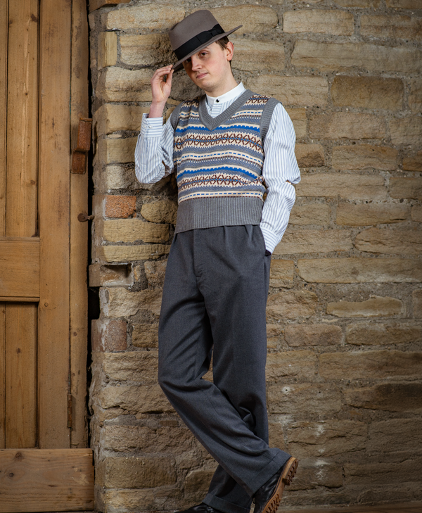 From heritage Fair Isles to traditional waistcoats, our men’s knitwear collection revives iconic 1940s style.