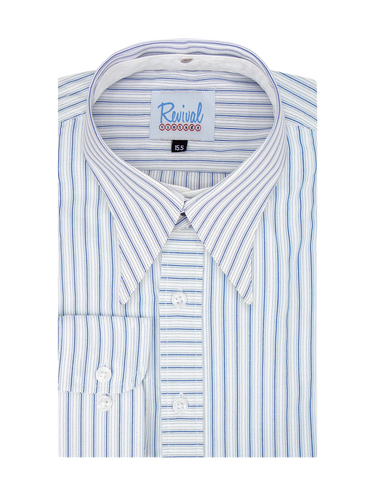 1940s Detachable Spearpoint Collar Shirt -16” Navy Blue Orton Stripe