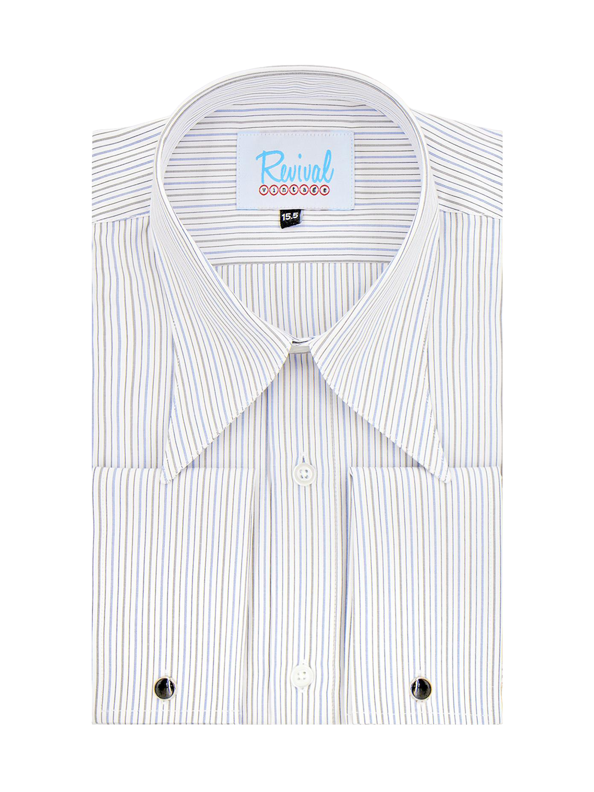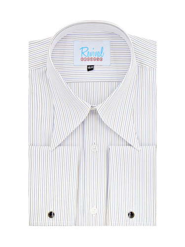 1940s Style Spearpoint Collar Shirt With French Cuff - Grey & Blue Windsor Stripe