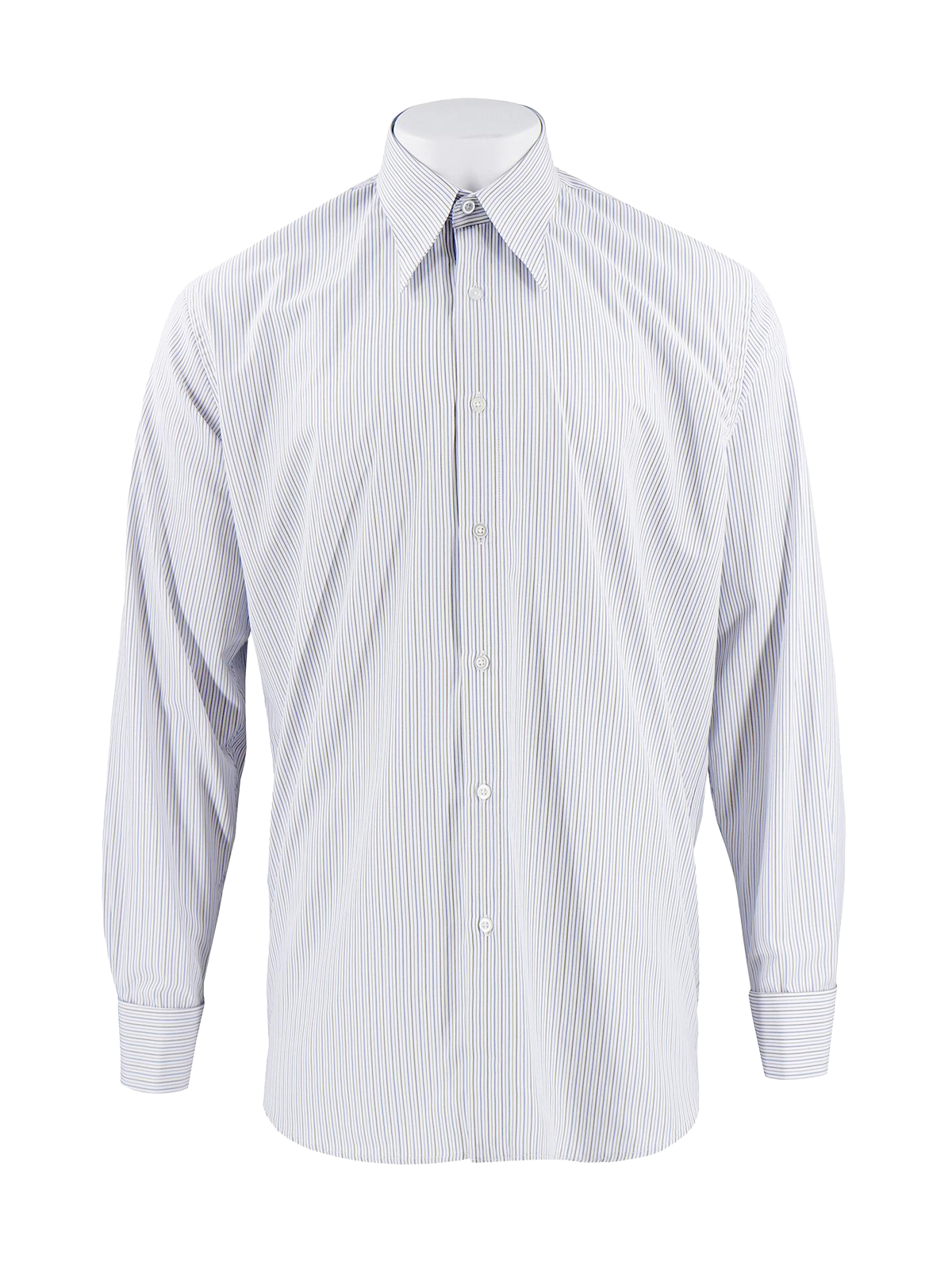 This forties vintage style cotton shirt with a spearpoint collar and alternating grey and blue stripes. The style of our shirts is copied exactly from an original. A classic menswear style and quality.
