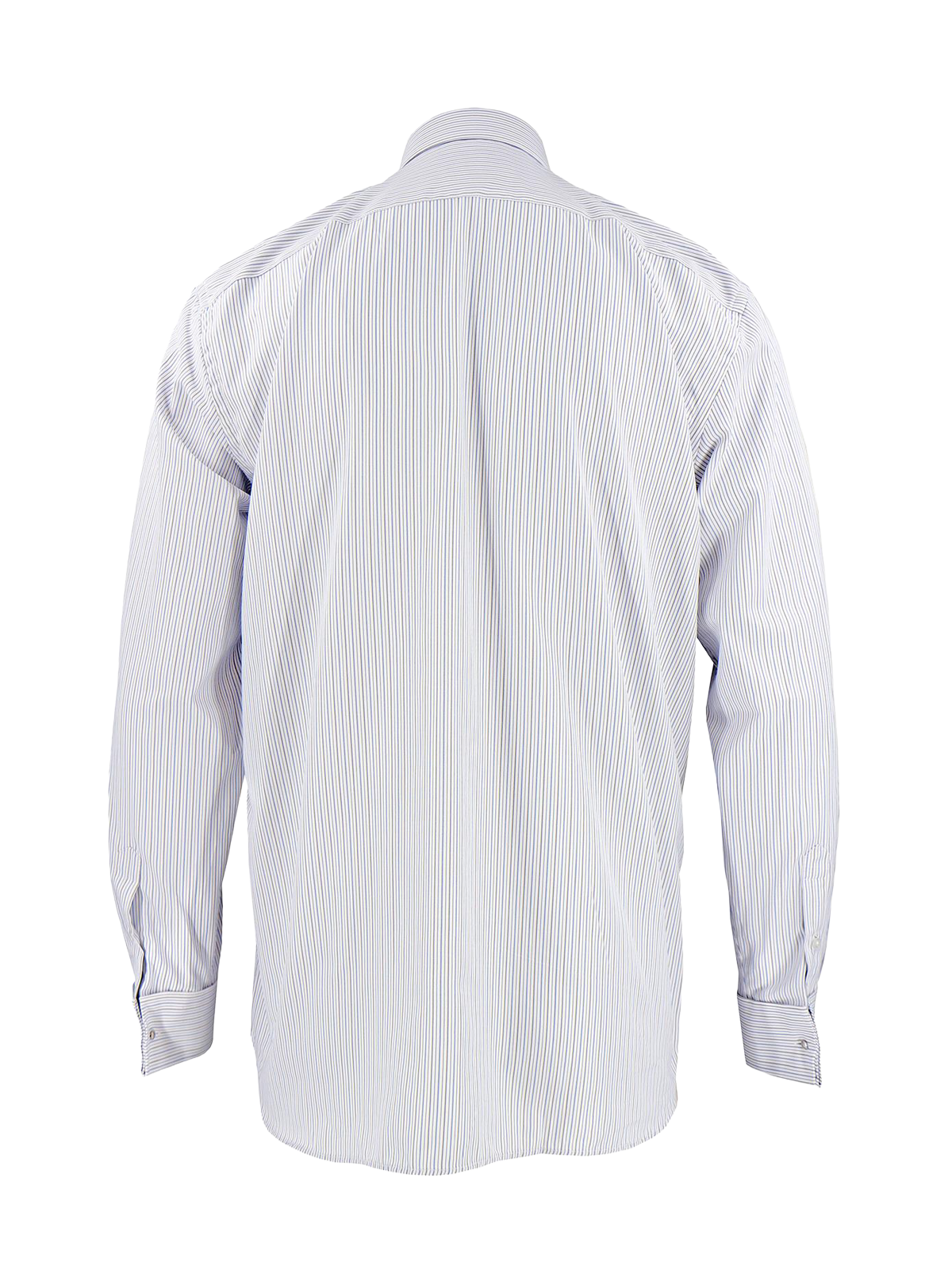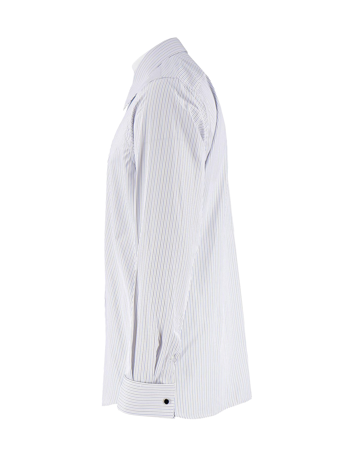 The shirt has shoulder and back yokes, and hem godets at the side seams make it a comfortable choice. It features French cuffs with included black cufflinks. The shirt is both easy care and high quality.