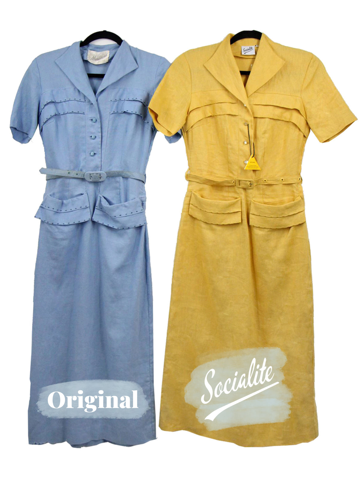 Our Revival Replicas are faithfully recreated vintage styles, made new using quality fabrics and original design details. While they’re not true vintage, they are carefully constructed to echo the look, feel, and charm of the originals.