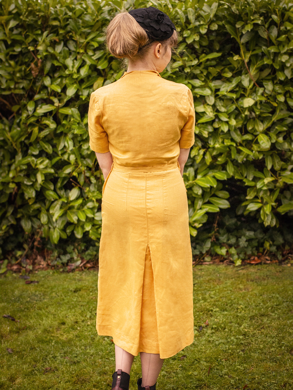 1940s Vintage Spirit Linen Dress - Honey Yellow