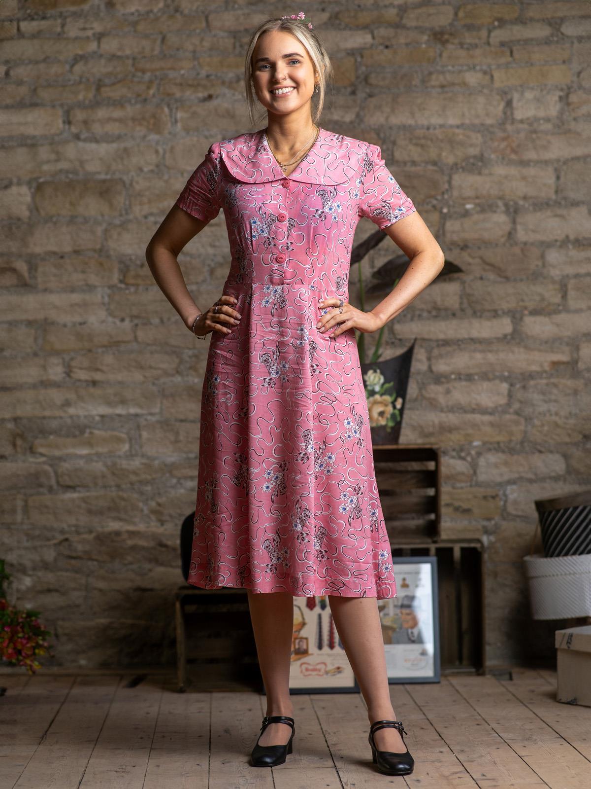 Presenting our Summer Harvest dress in a romantic rose pink. This time, we haven't just recreated a 1940s garment but also the stunning fabric print.