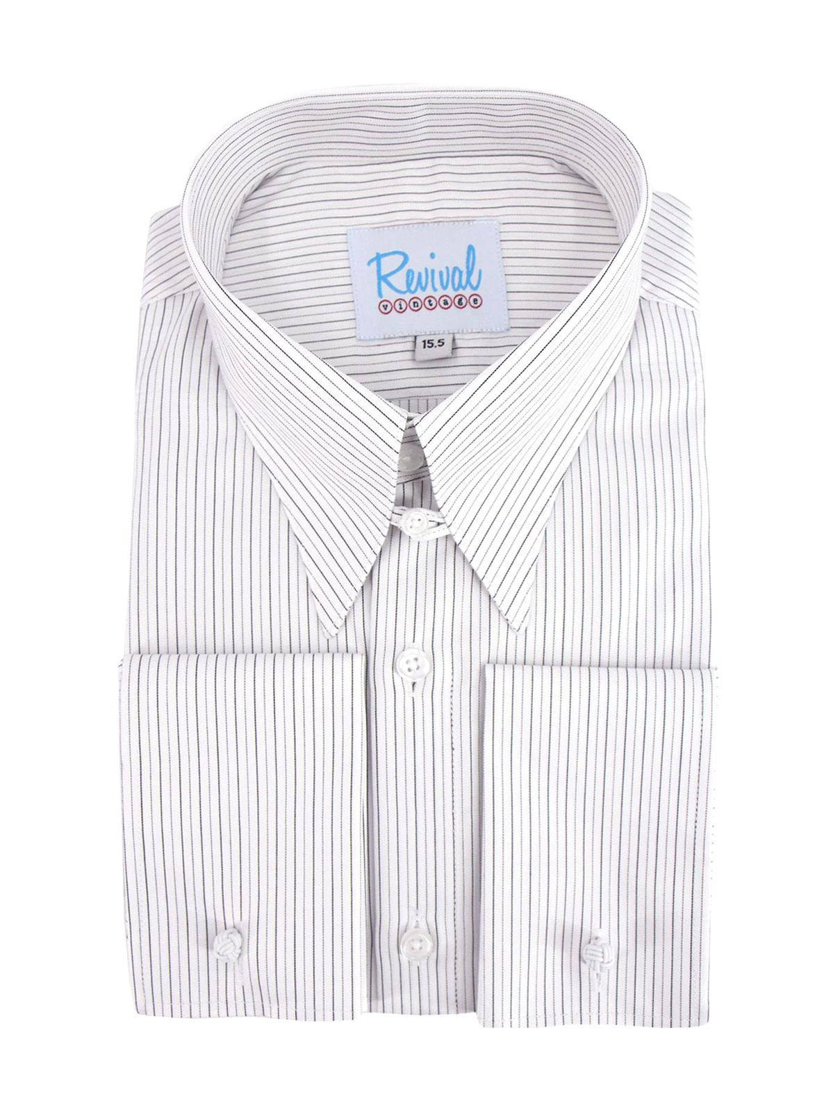 1940s Style Vintage Spearpoint Shirt with Tab Collar - Black Lockwood Stripe