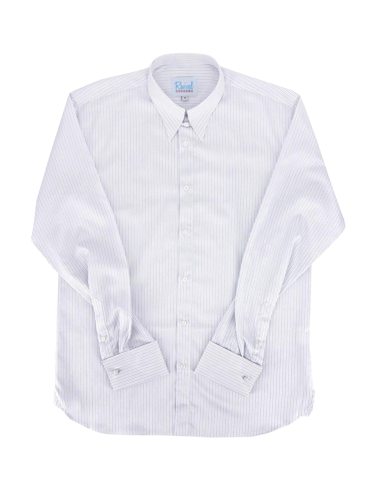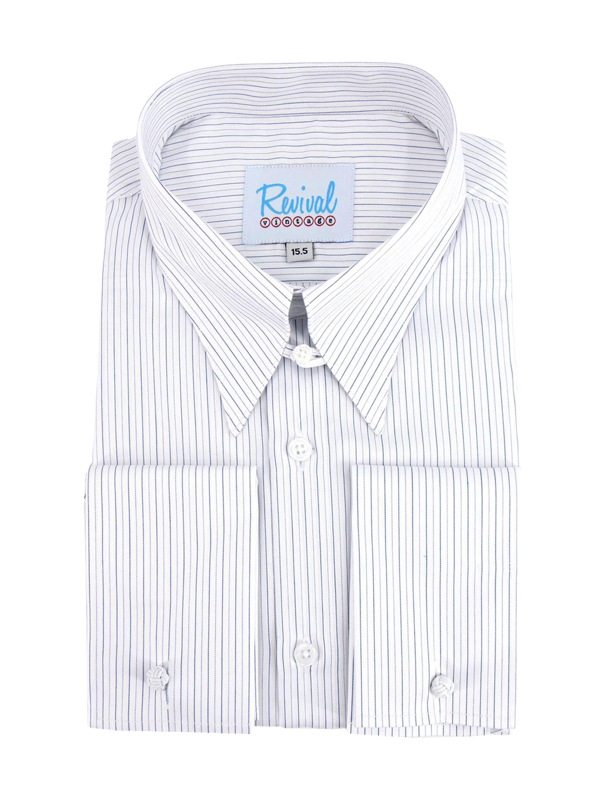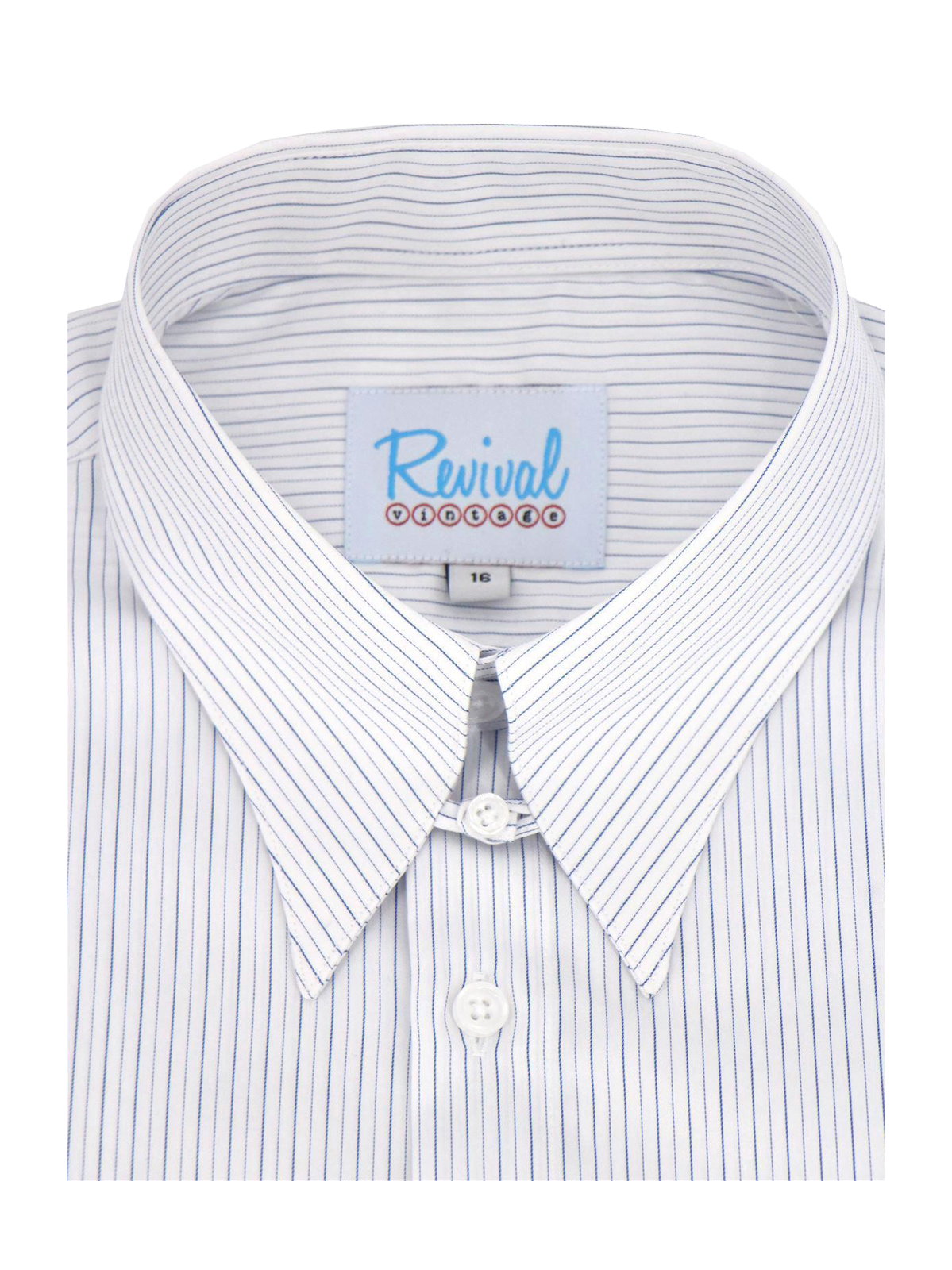 1940s Style Vintage Spearpoint Shirt with Tab Collar - Blue Lockwood Stripe