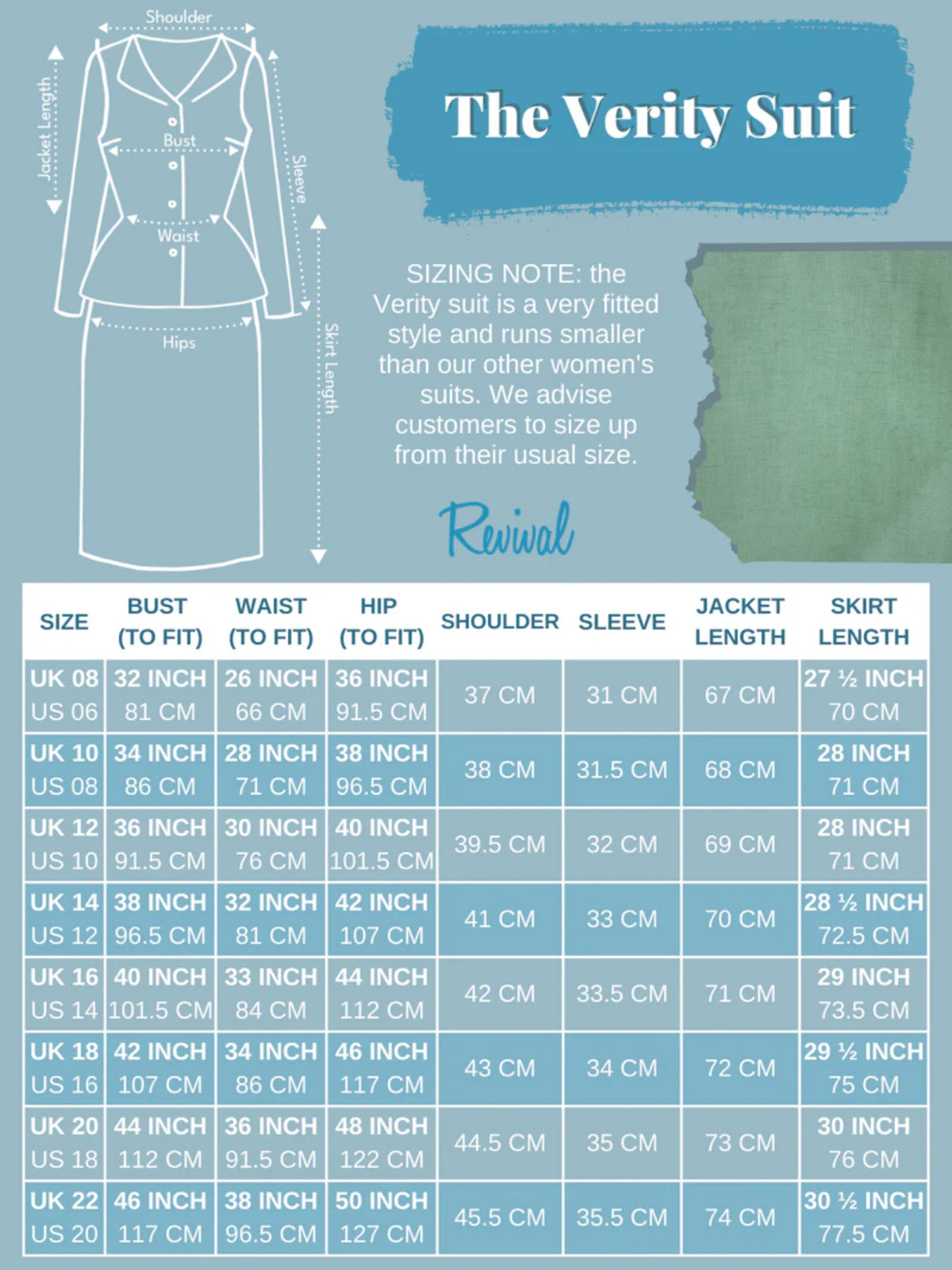 The Verity suit is a very fitted style and runs smaller than our other women's suits. We advise customers to size up from their usual size. Consult the size chart for measurements.