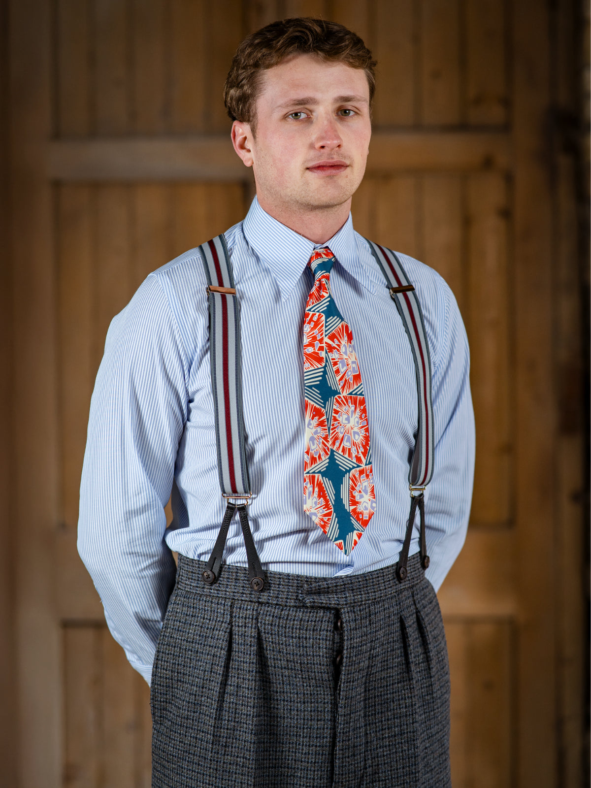 Our trousers are designed to be worn high waisted, sitting higher on the body than most modern trousers. If you typically wear a size 34" or larger, we recommend ordering one size up to ensure a comfortable fit.