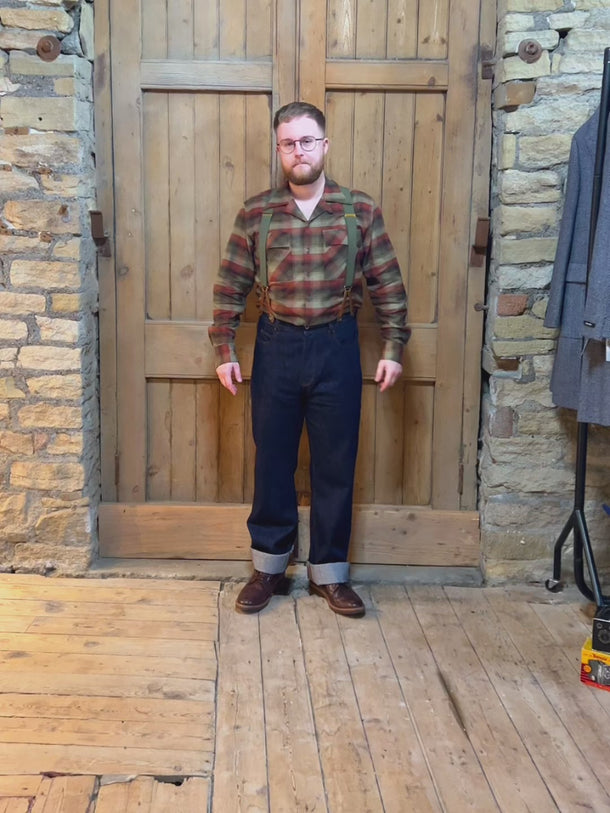 This Socialite collection shirt was designed for the colder months in a cosy brushed cotton, inspired by a more relaxed look 1950s style. The brown and green tones of the check are perfect for outdoor adventures, or sitting by the fire. Perfect for layering with a vest or gilet or a stand-alone style statement.