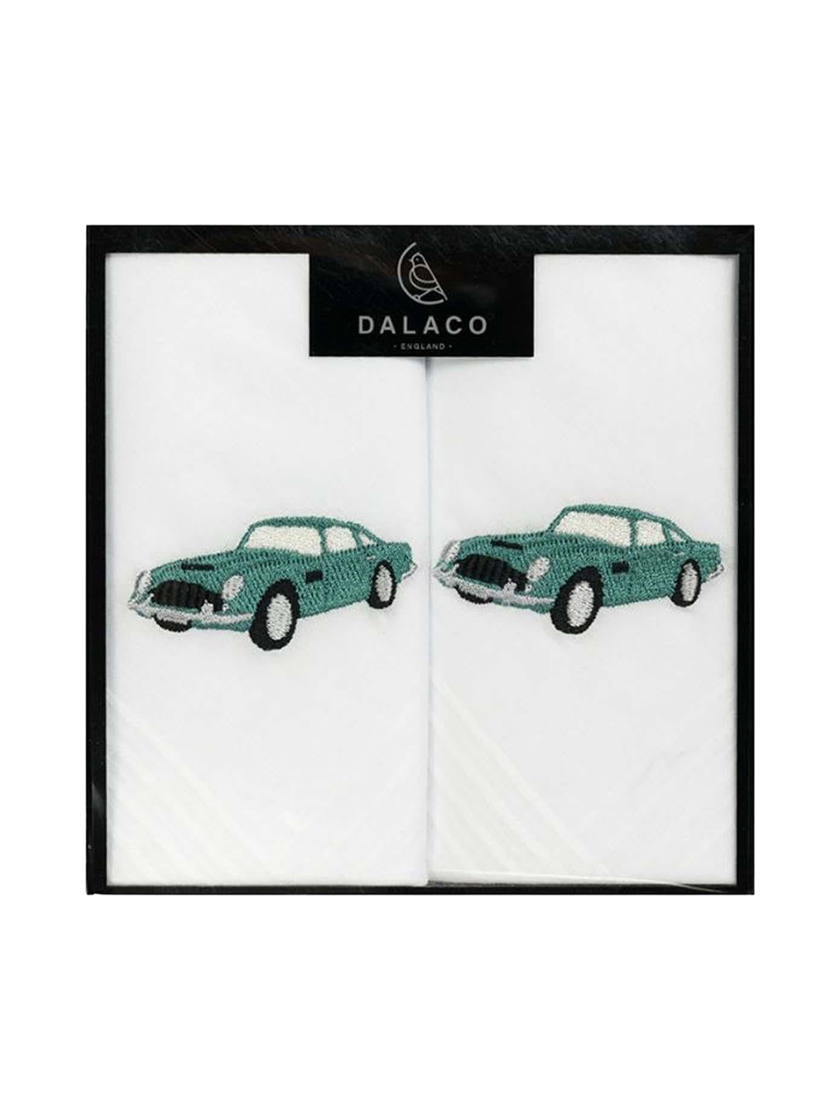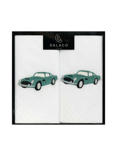 A set of two handkerchiefs embroidered with charming retro car designs. Made from 100% mercerised cotton for a smooth and durable finish.
