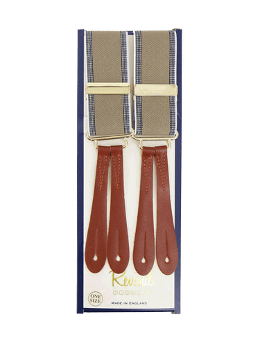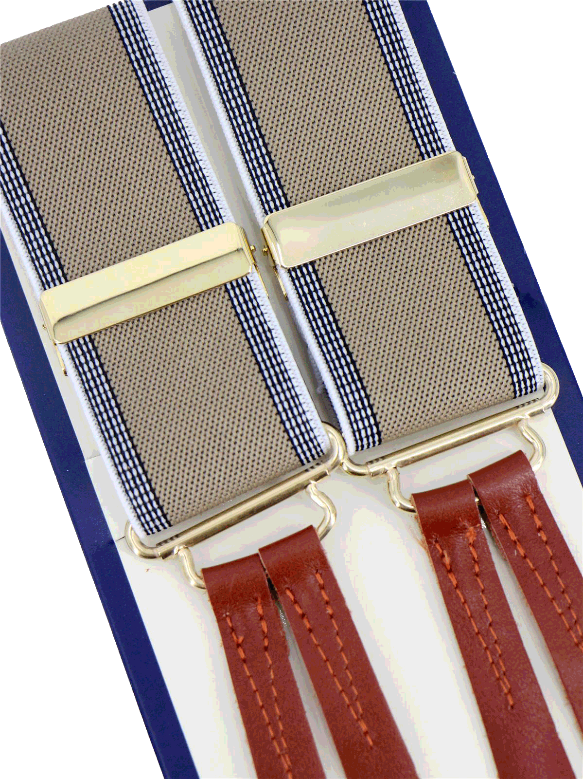 Khaki Border Stripe 1940s Style Braces with Leather Loops