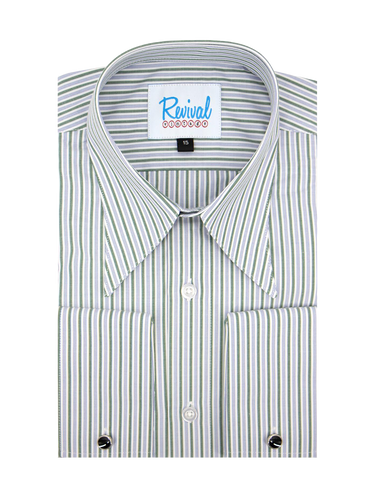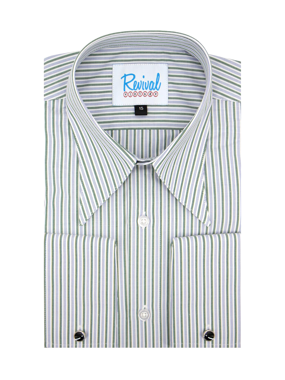1940s Spearpoint Collar Shirt with French Cuff - Calder Green Stripe