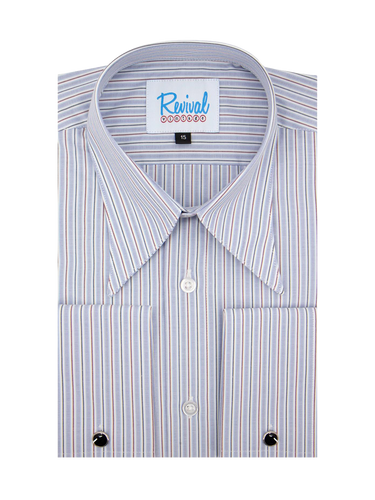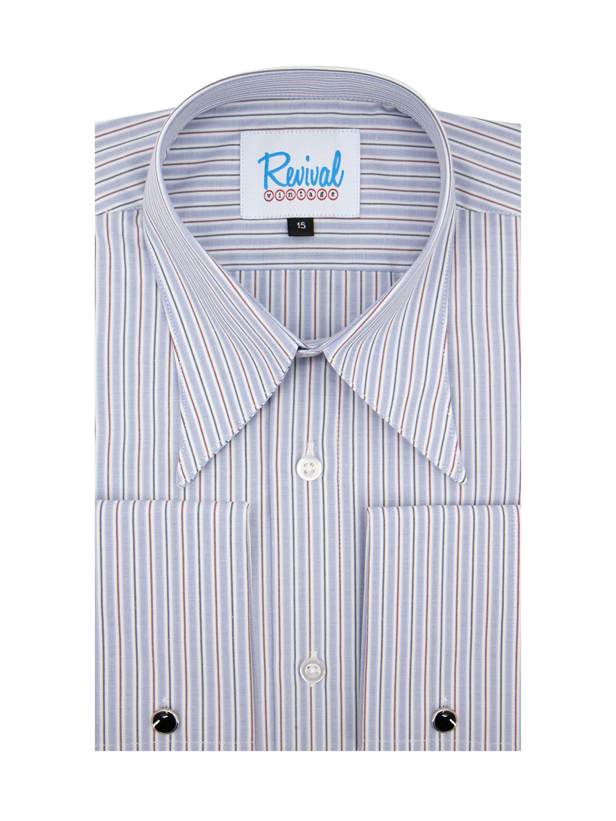 1940s Style Spearpoint Collar Shirt with French Cuff - Marsden Multi Stripe