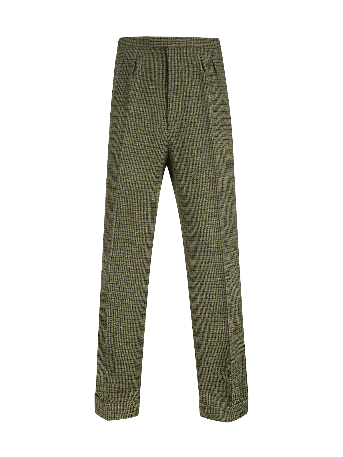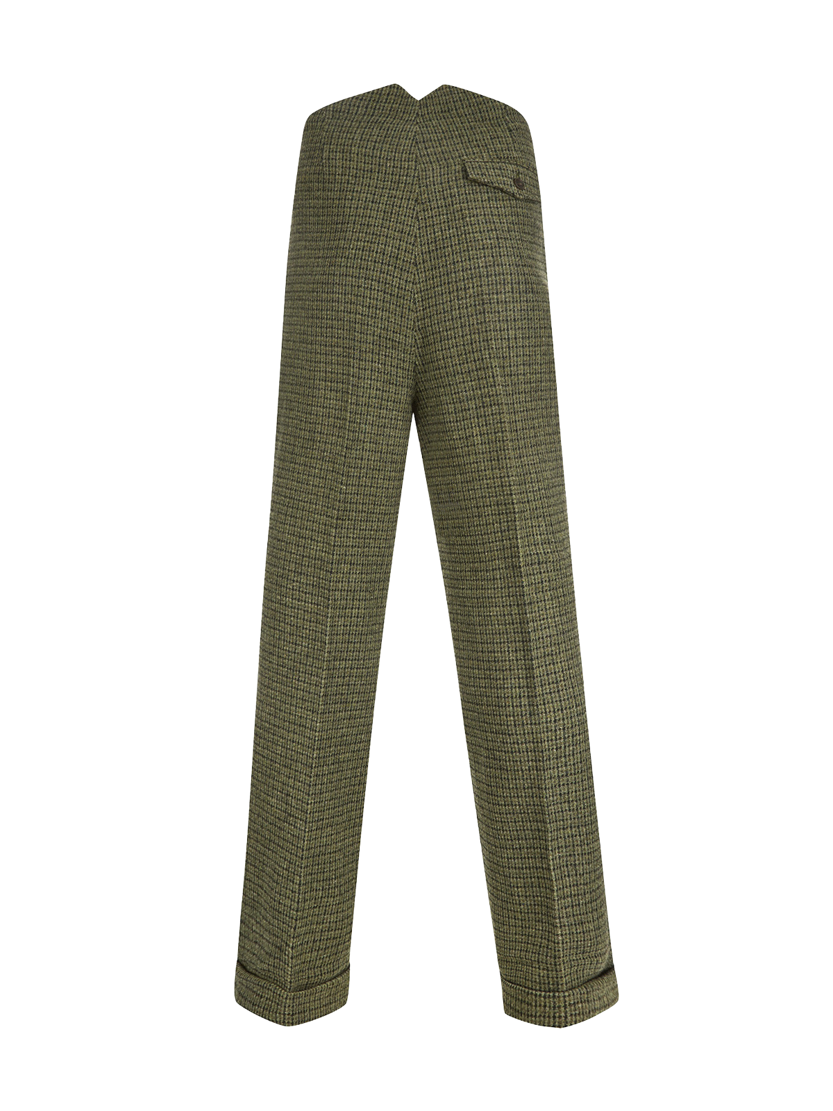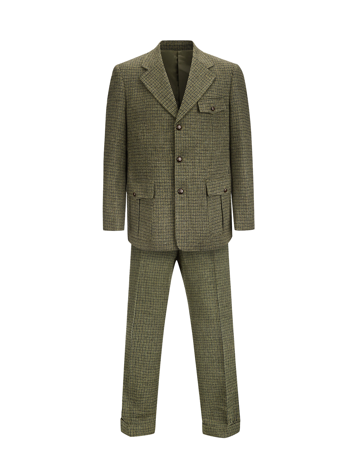 The jacket and trousers are a versatile multi shade green houndstooth check tweed, sure to pair well with other items in your wardrobe when not worn as a full suit.
