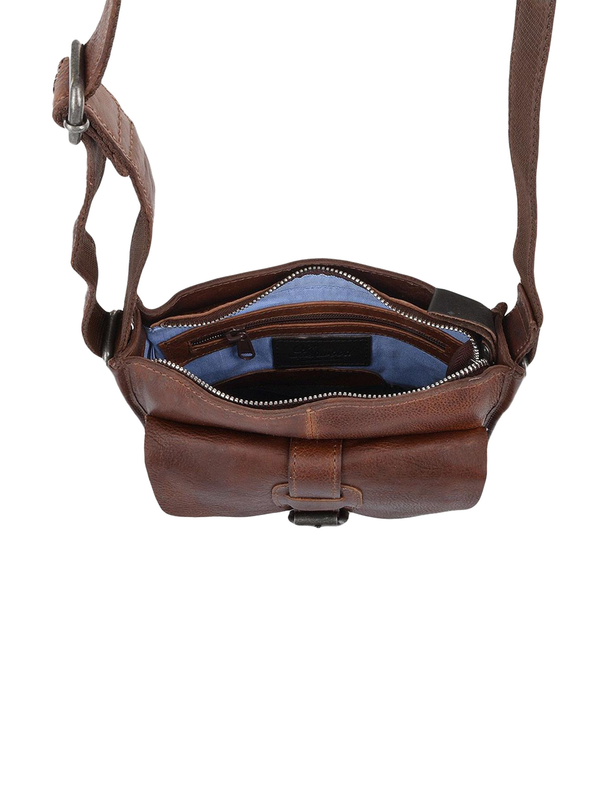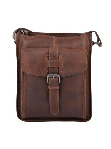 Men's Small Leather Vintage Style Crossbody Bag - Tan