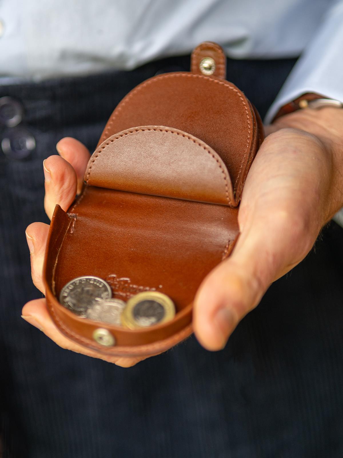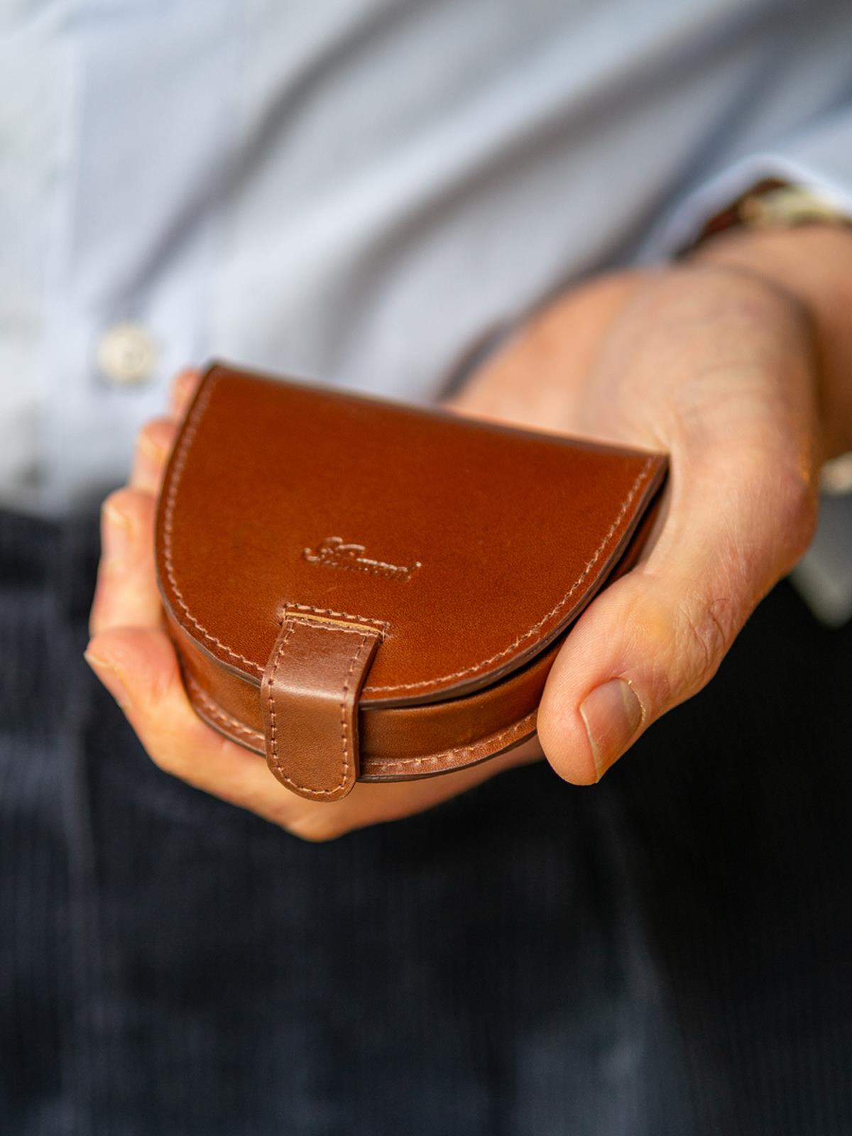 These leather coin purses are a practical and authentic accessory for a 1940s inspired civilian look. Crafted from vegetable-tanned leather, they feature smooth curved lines and a rich, natural finish.