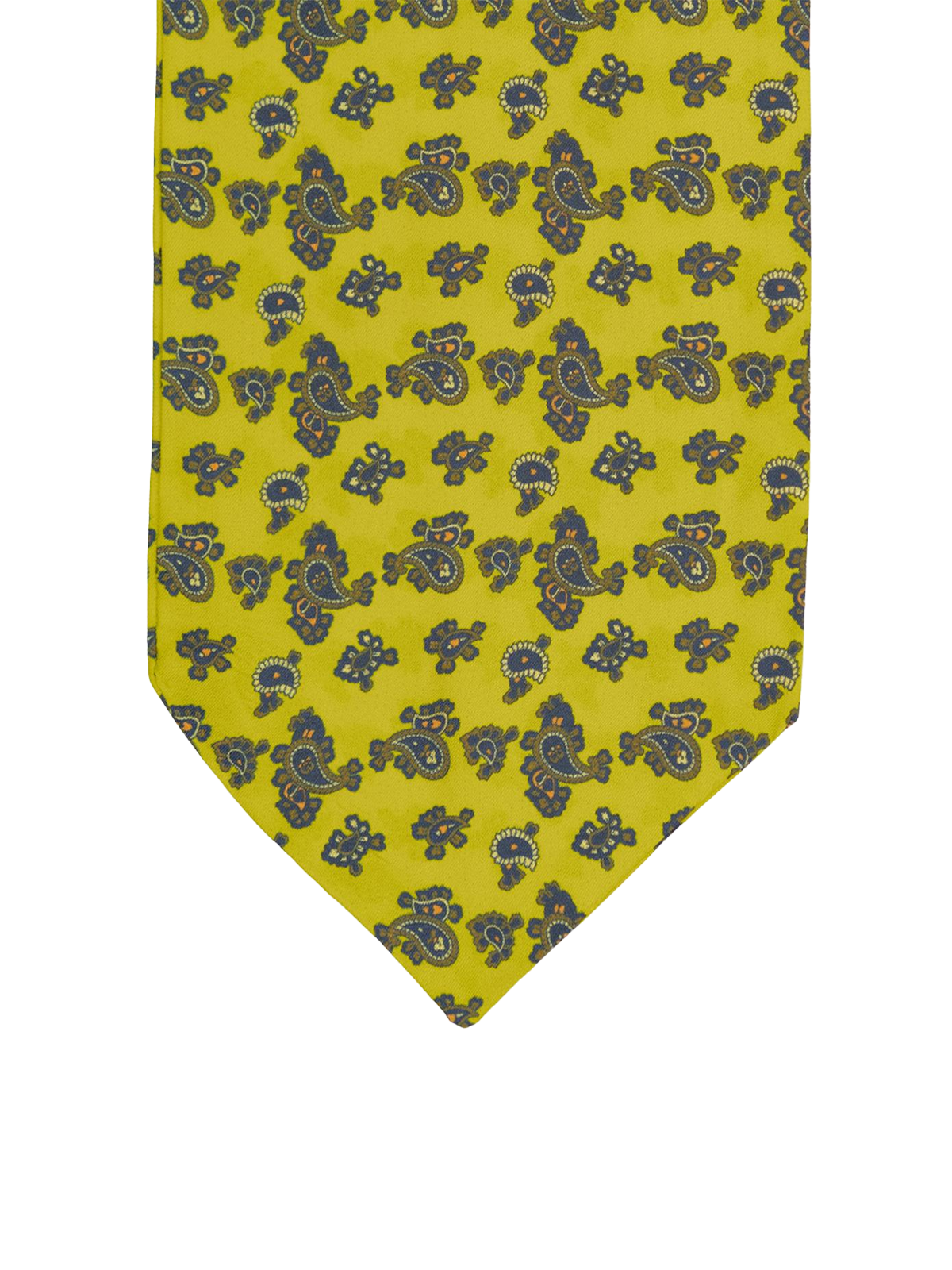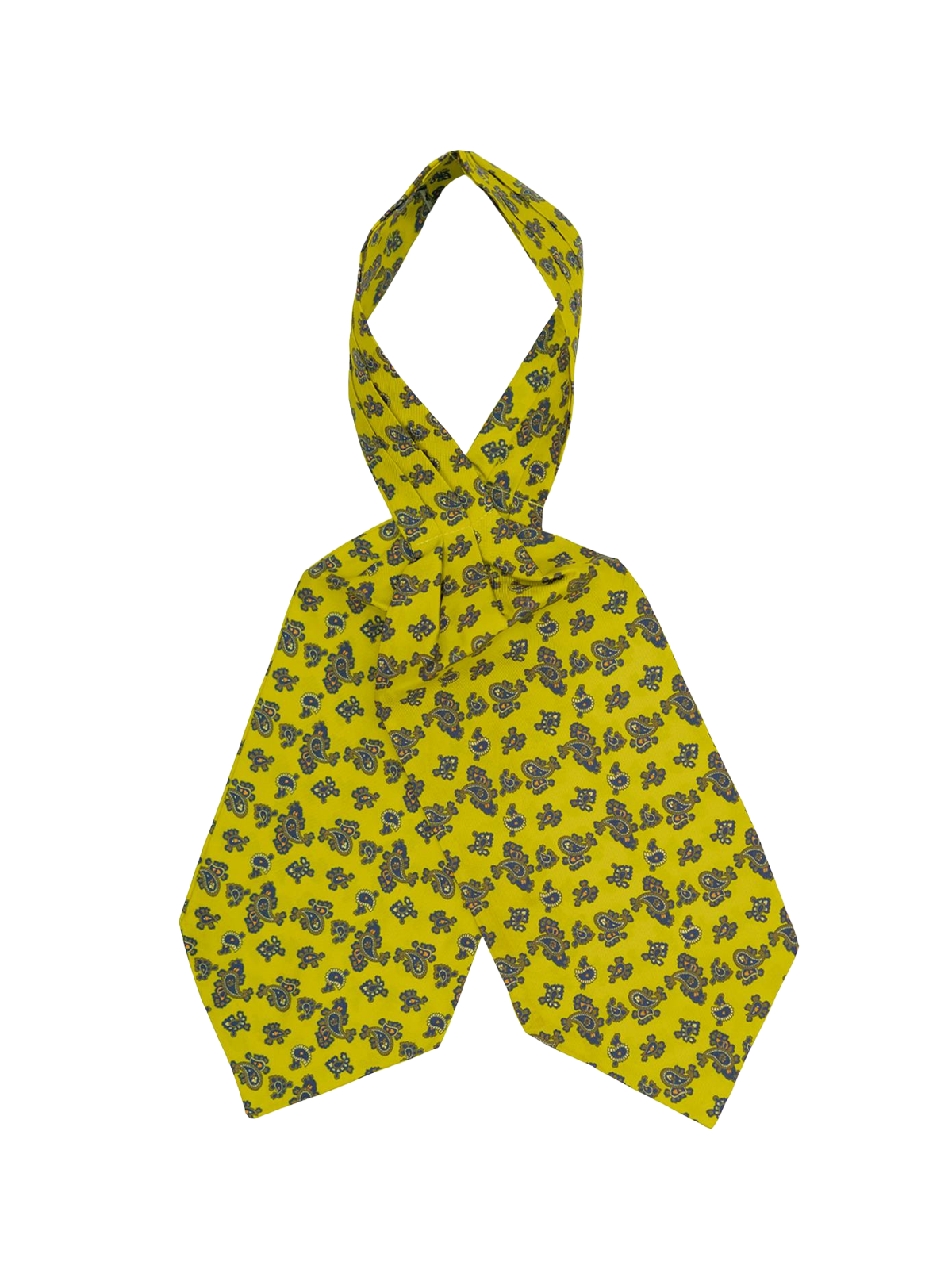 Yellow & Multi Paisley Print Pure Silk Vintage Style Cravat