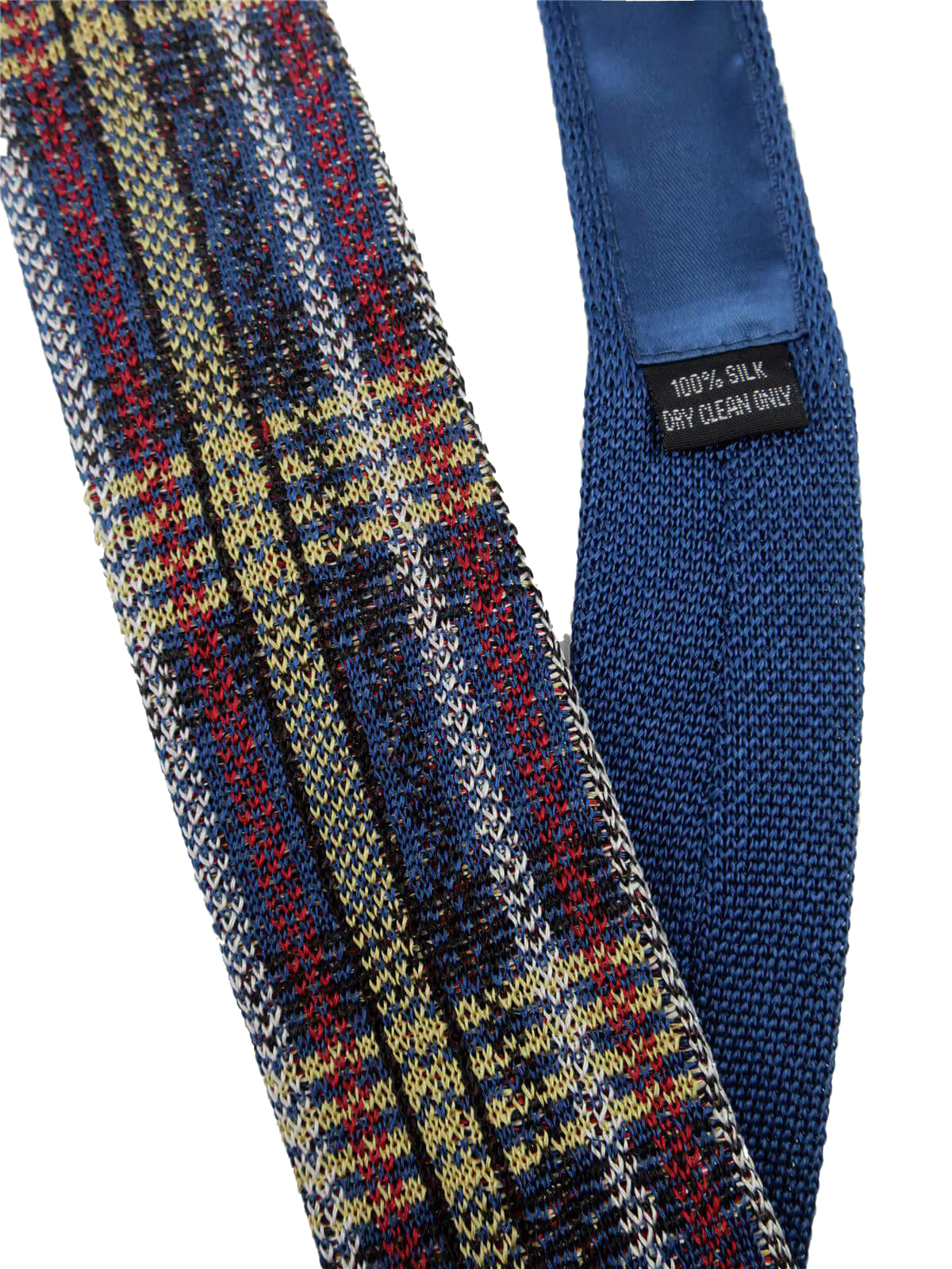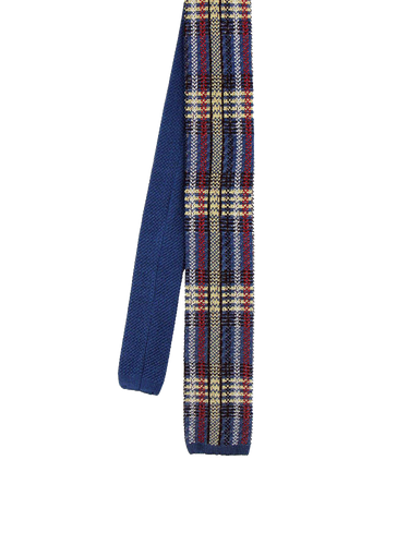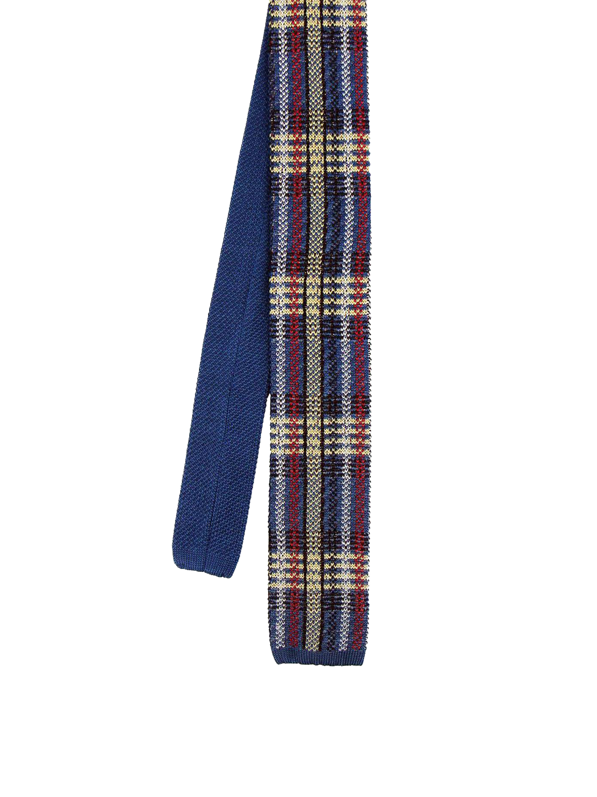 1960s Style Large Blue Check Knitted Silk Slim Tie