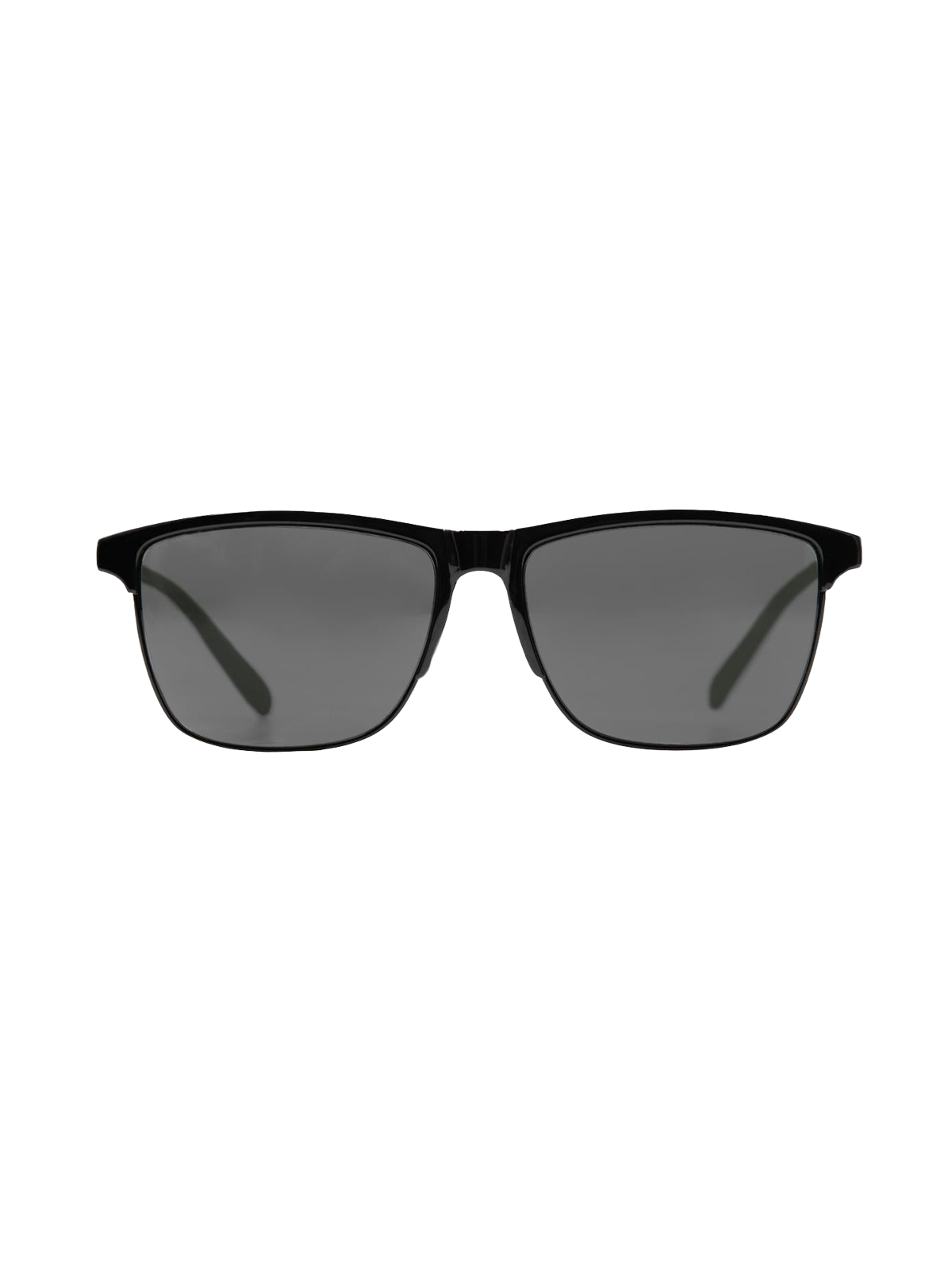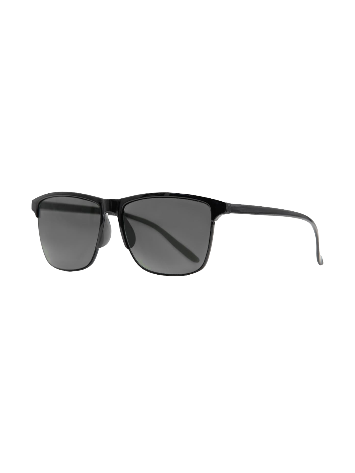 Retro style sunglasses with a classic black frame and grey tinted lenses. A versatile accessory that pairs well with many vintage inspired looks while offering full eye protection.