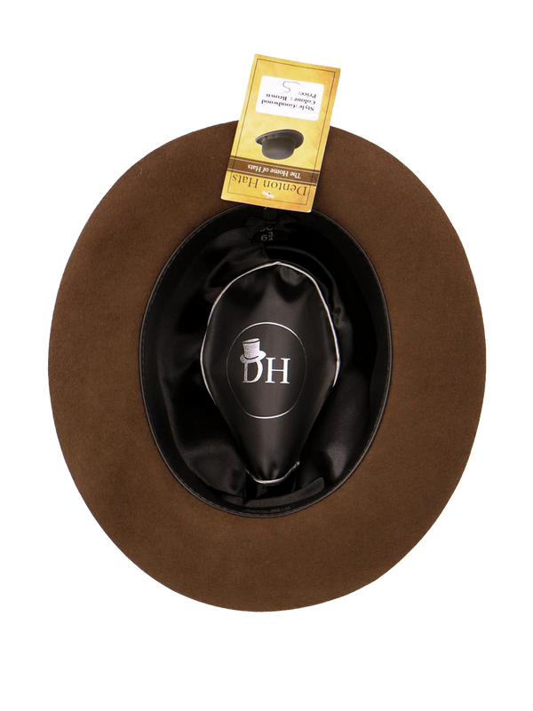 55cm (Small) 5 in stock57cm (Medium) 6 in stock59cm (Large) 16 in stock61cm (Extra Large) 8 in stock1940s Look Brown Pure Wool Fedora £39.99 /
