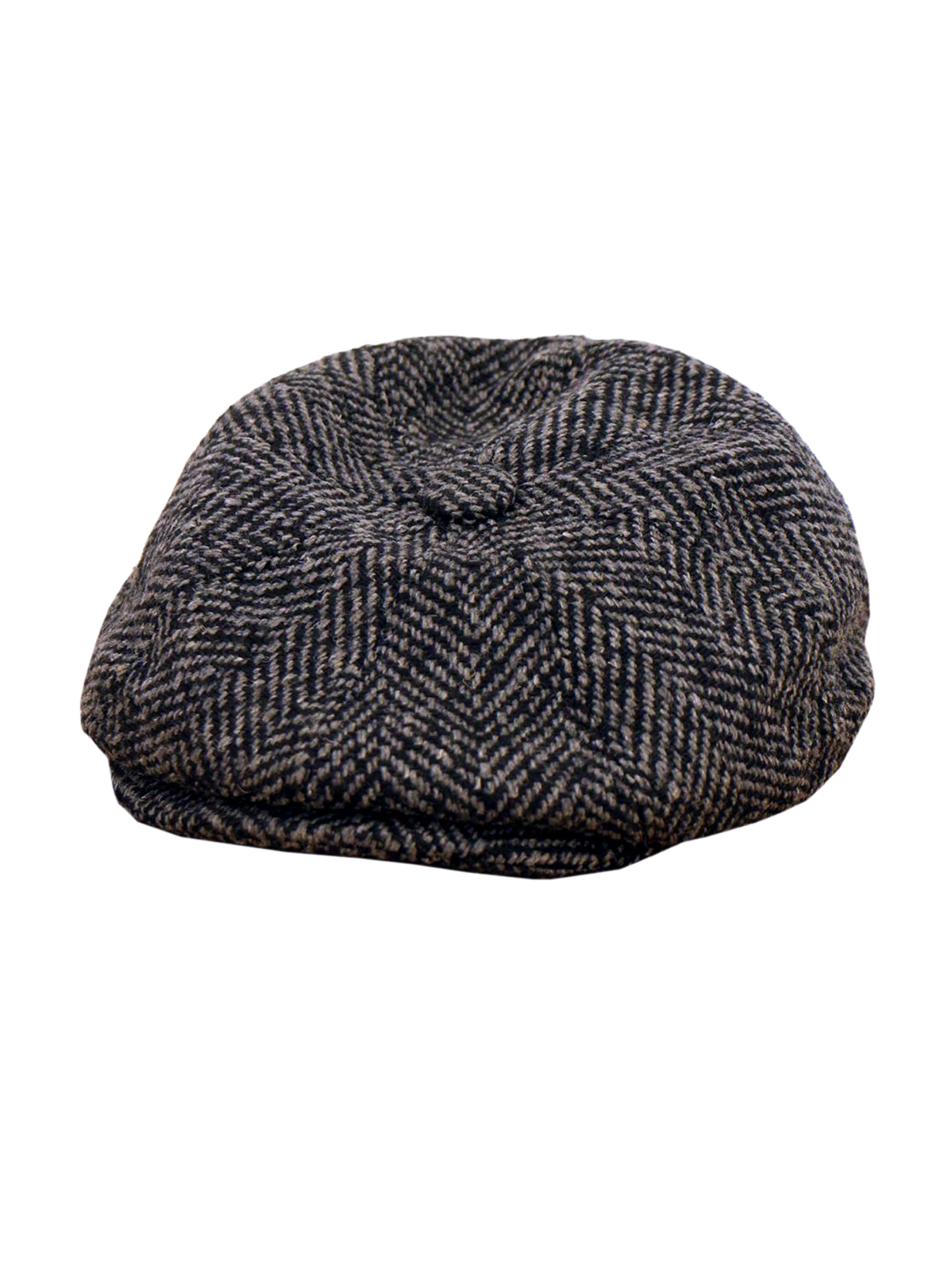 Vintage Look Charcoal Herringbone Newsboy Cap