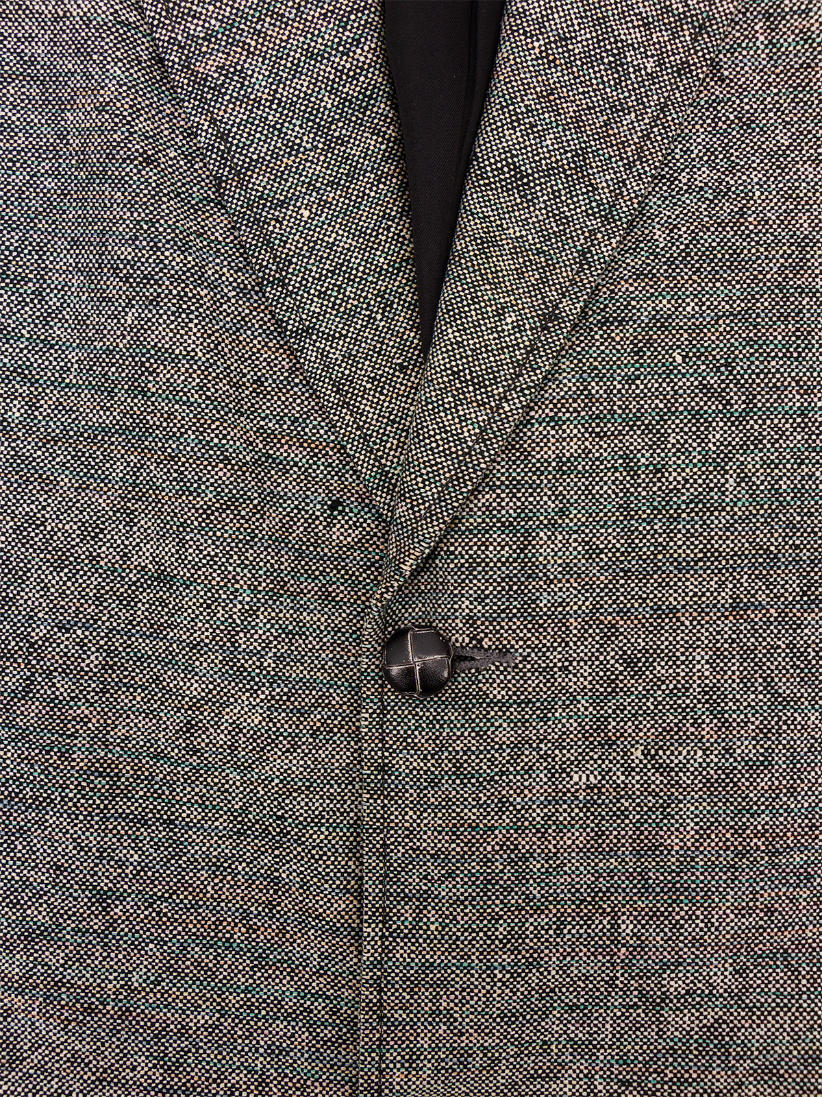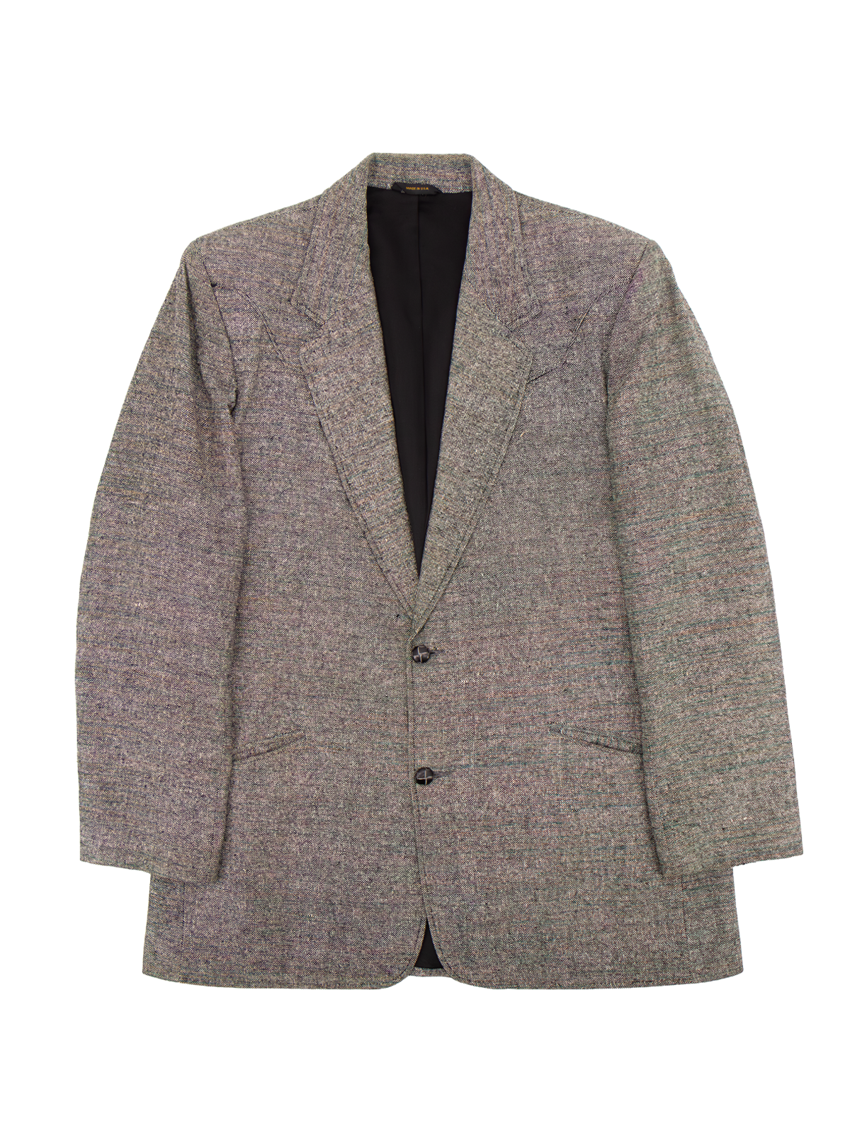 This true vintage jacket is made in the USA, and has charming American western features, note the signature chest and back detail. The slub fabric is a textured salt and pepper, with delicate flecks of blue, green and light peach woven throughout. There is some fraying on the cuffs, reflected in the price, but otherwise in very good vintage condition.