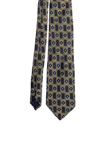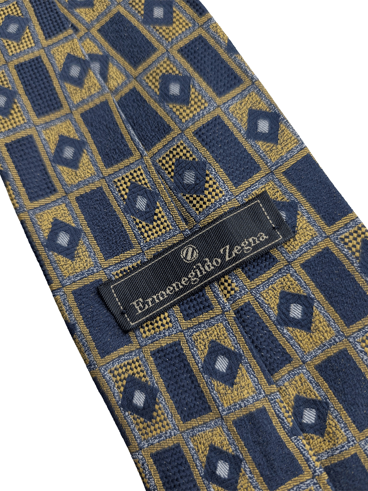 Ermenegildo Zegna Navy & Gold Geometric Silk Tie