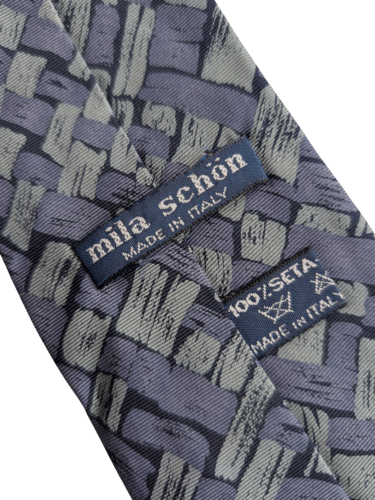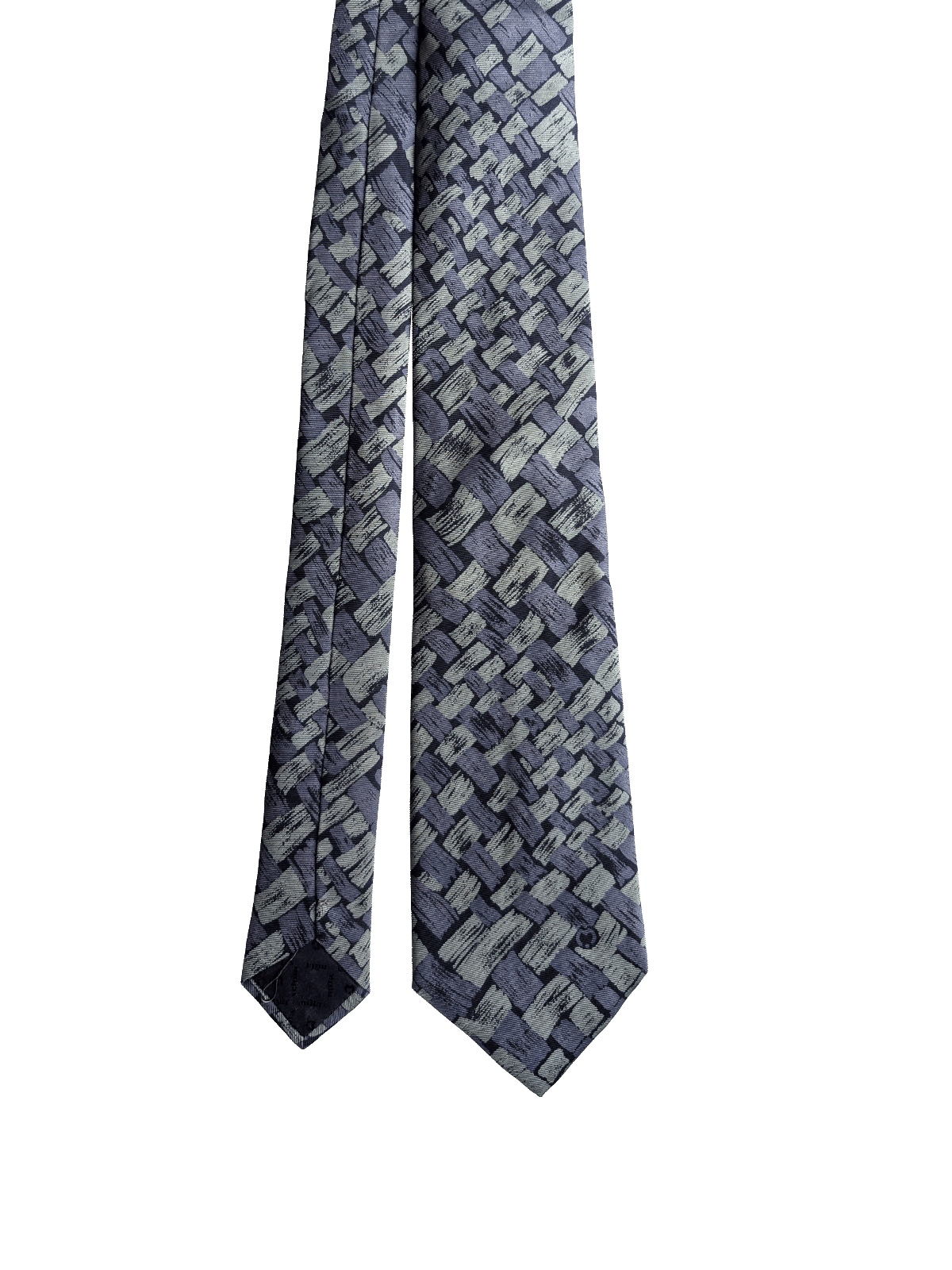 100% silk, true vintage tie, in tonal blues. The design is in the style of brushstrokes, featuring a crosshatch pattern. A high quality item, made in Italy.