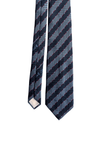 True Vintage Navy Stripe Geometric Silk Tie