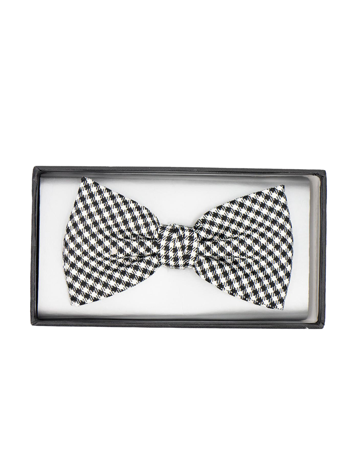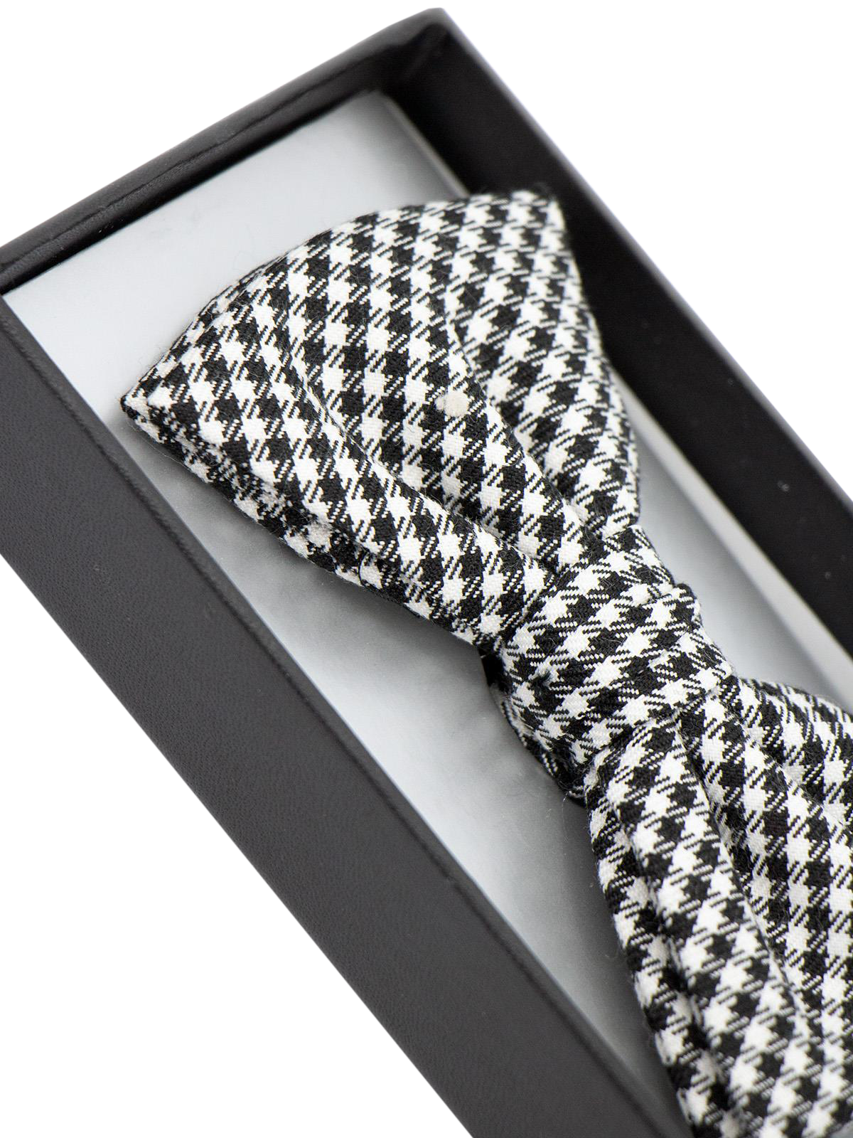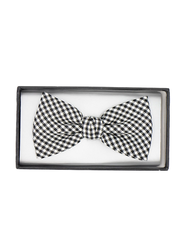 A high quality British made pre-tied bow tie in a fine black and white gingham check. Features an adjustable strap fastening at the back of the neck for a comfortable fit. Made from lightweight fabric. Handmade in England and presented in a Knightsbridge clear storage box.