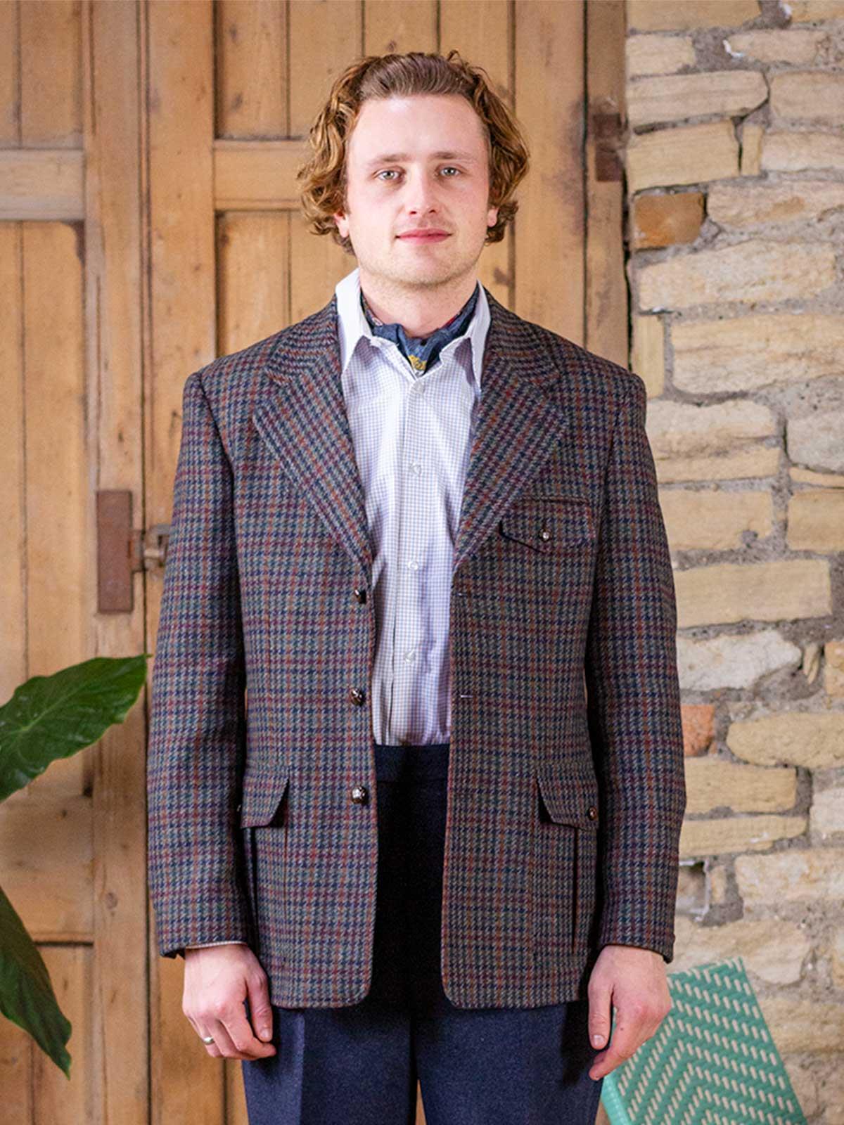 This version of the popular Clubman jacket has been re-imagined in an elegant multicoloured houndstooth check. Rust, navy, plum and tonal green colours have all been woven into this truly premium cotton blend tweed.