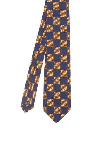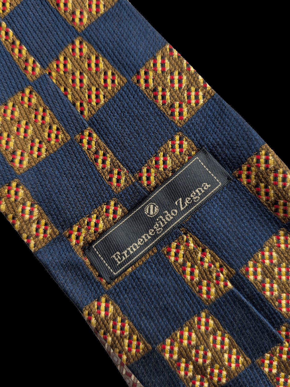 Ermenegildo Zegna Navy and Gold Check Silk Tie