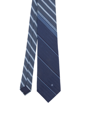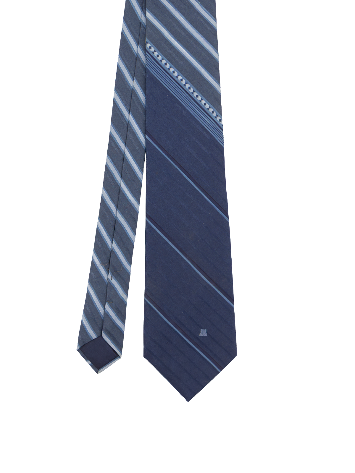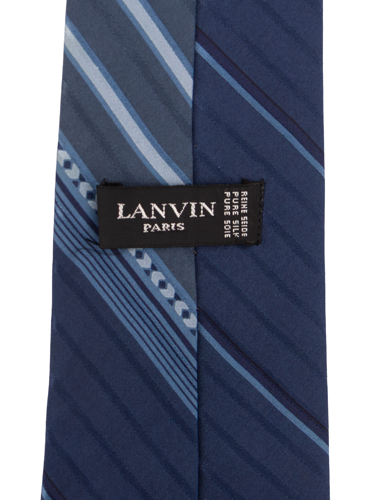A refined true vintage tie from Lanvin, made from pure silk. Designed in a sophisticated tonal blue palette, with a twist on the classic diagonal stripe.