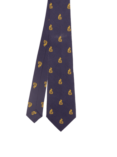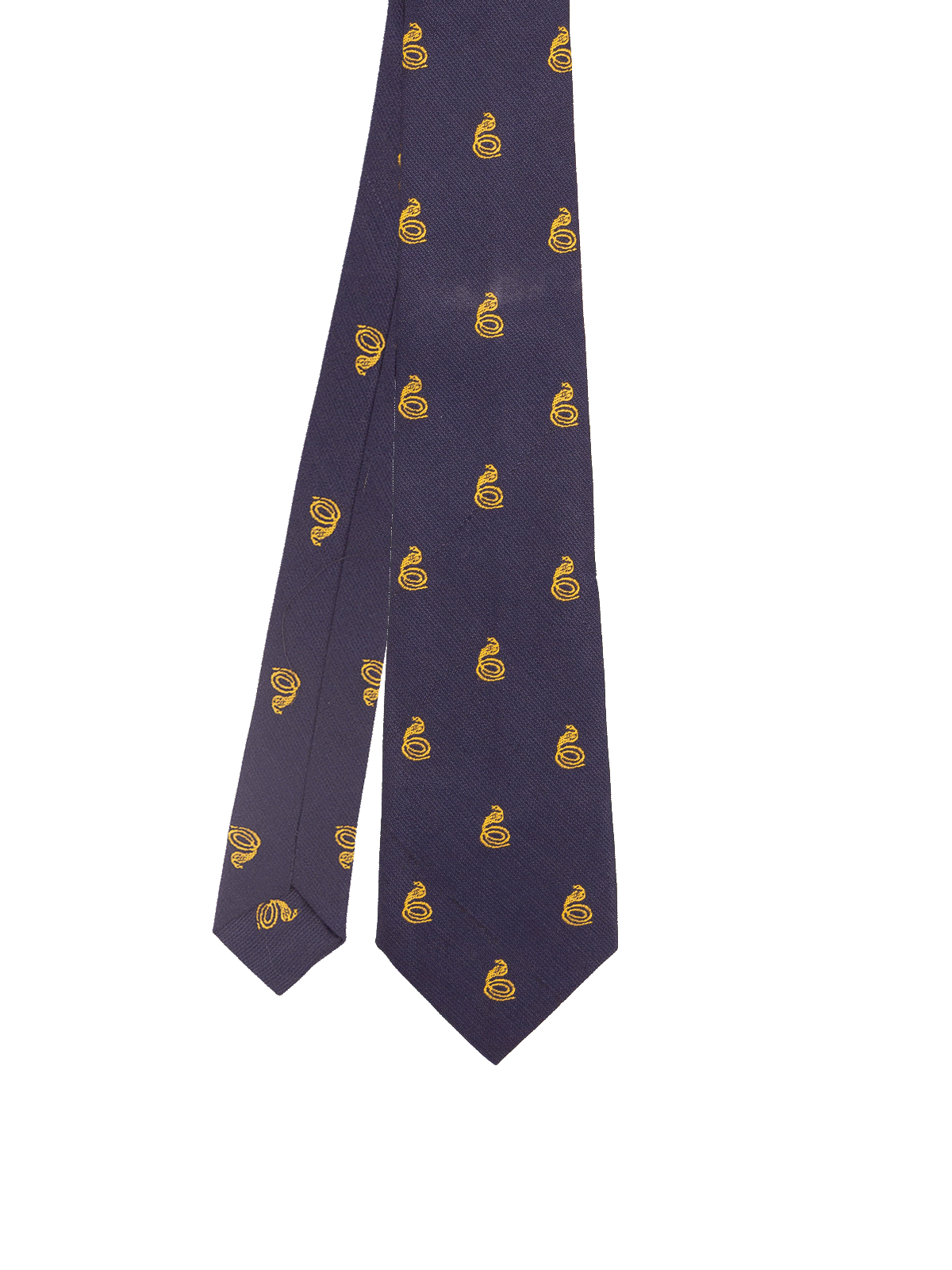 This unusual true vintage tie is decorated with a gold embroidered cobra, on a deep navy background. A perfect accessory to team with 1950s and western inspired outfits. A stylish way to add a dapper touch to your vintage style shirts.