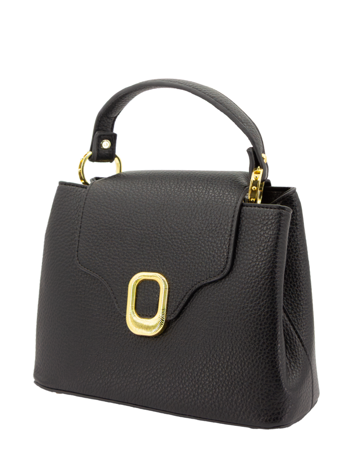 1960s Style Gold Oval Buckle Handbag - Black