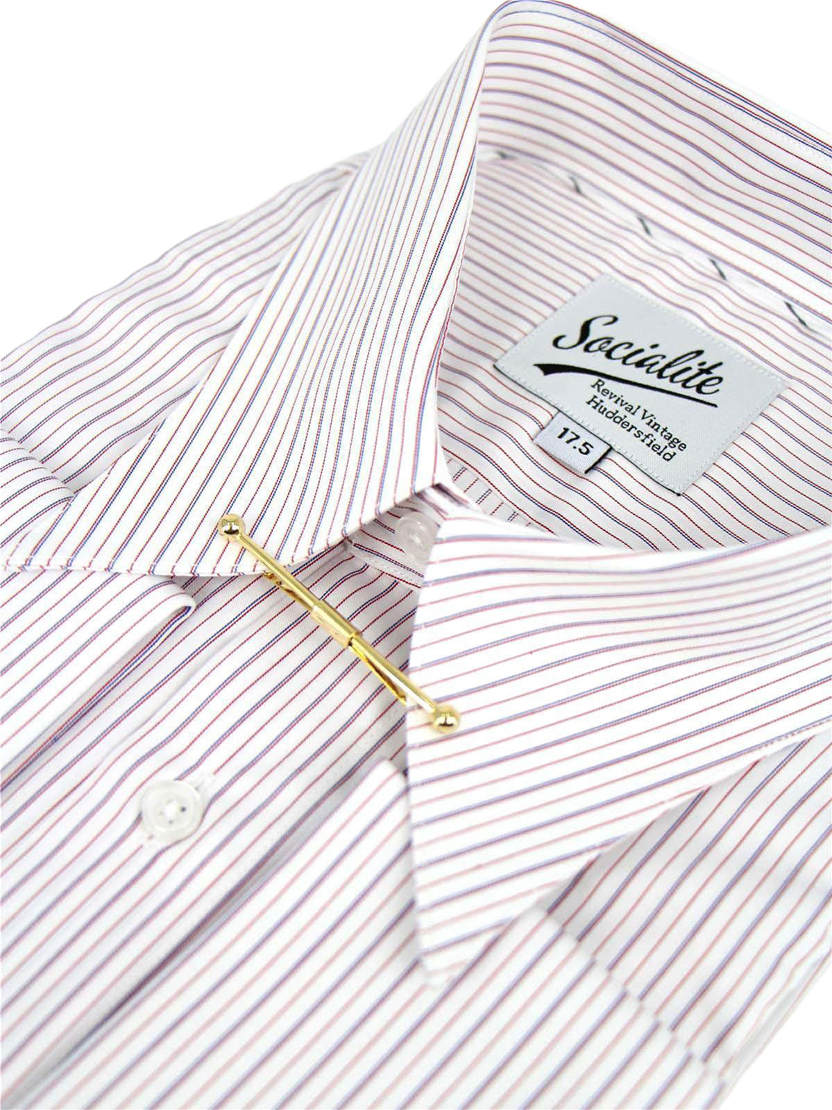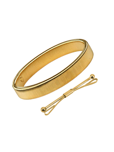 Add true 1940s flair to a vintage style spearpoint shirt with this coordinating gold accessory set, including one collar bar and one pair of sleeve garters. Designed for both style and practicality, these timeless pieces complete an authentic midcentury look.