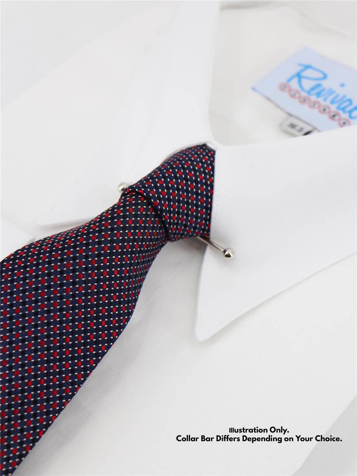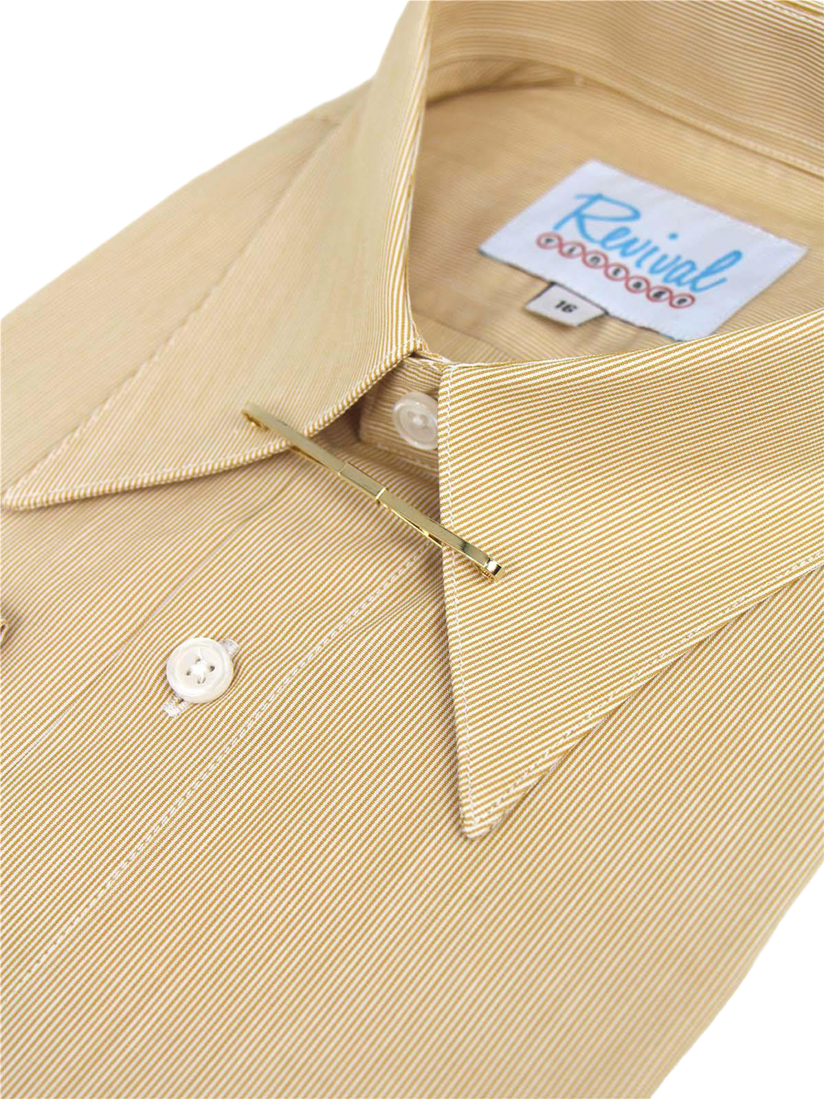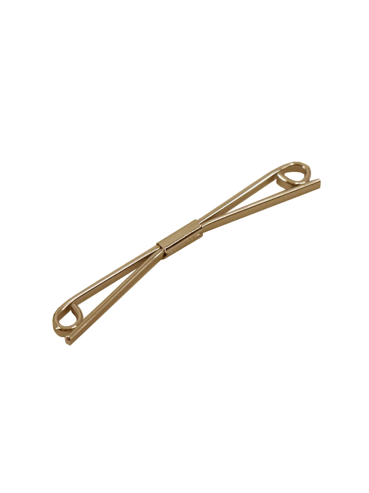 A classic 1940s inspired loop collar bar in polished gold, designed with a slight inward curve to sit neatly behind the tie knot. The clip-on style attaches easily to each collar flap, drawing the collar in for a sharp, polished look.