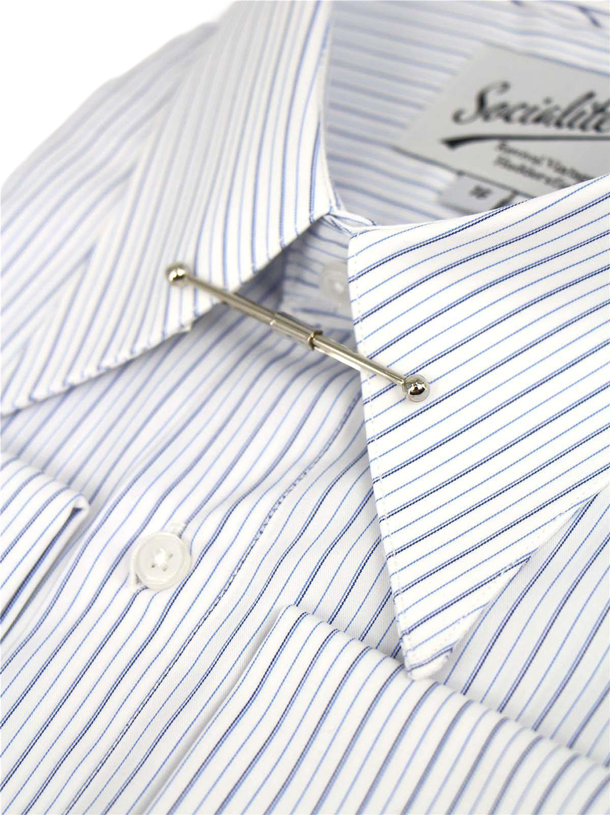A refined accessory designed to sit behind the tie knot, clipping to each side of the collar to draw it in for a sharp, polished look. The clip-on style makes it easy to wear without the need for collar holes, unlike the screw-in type.