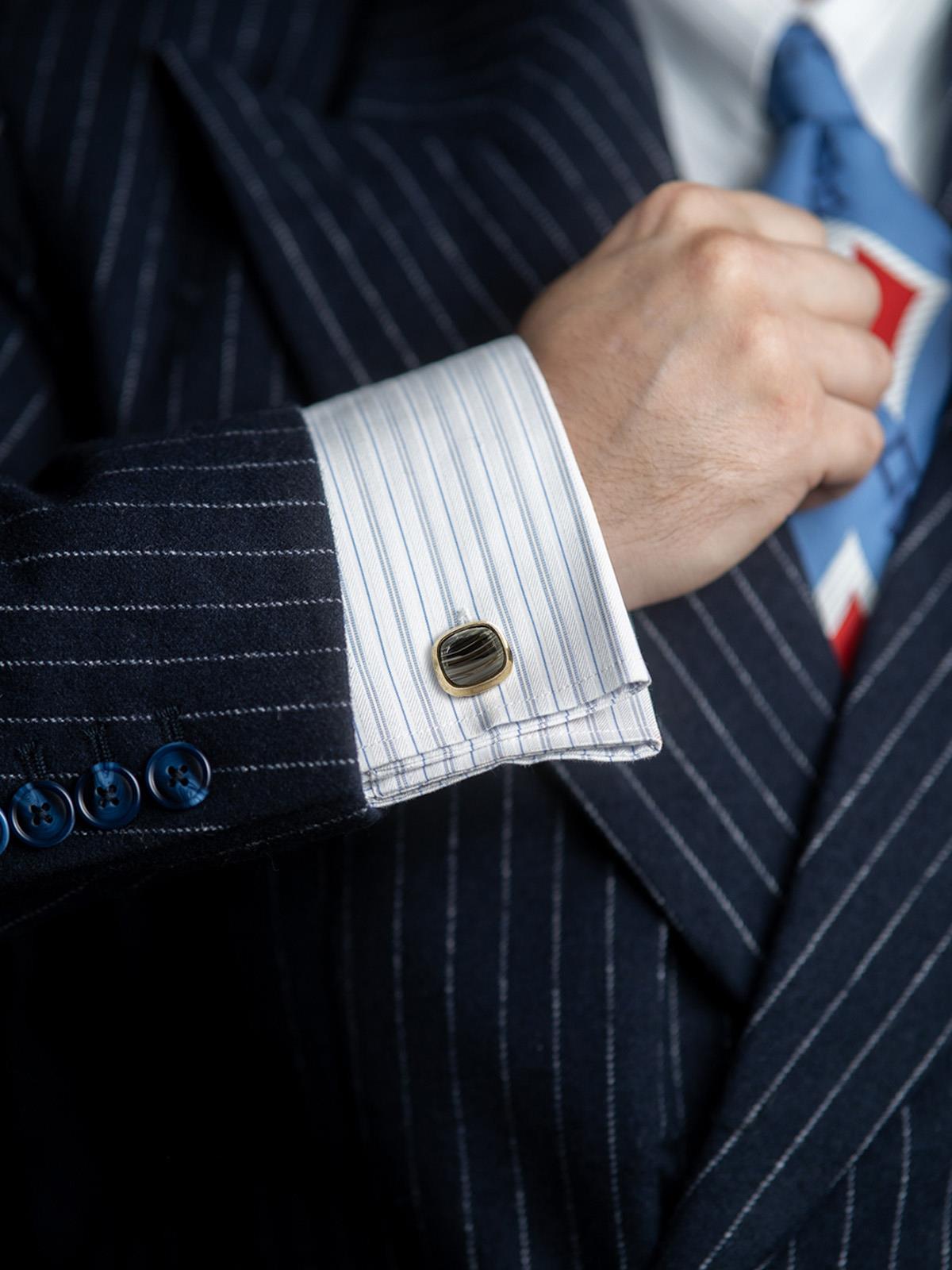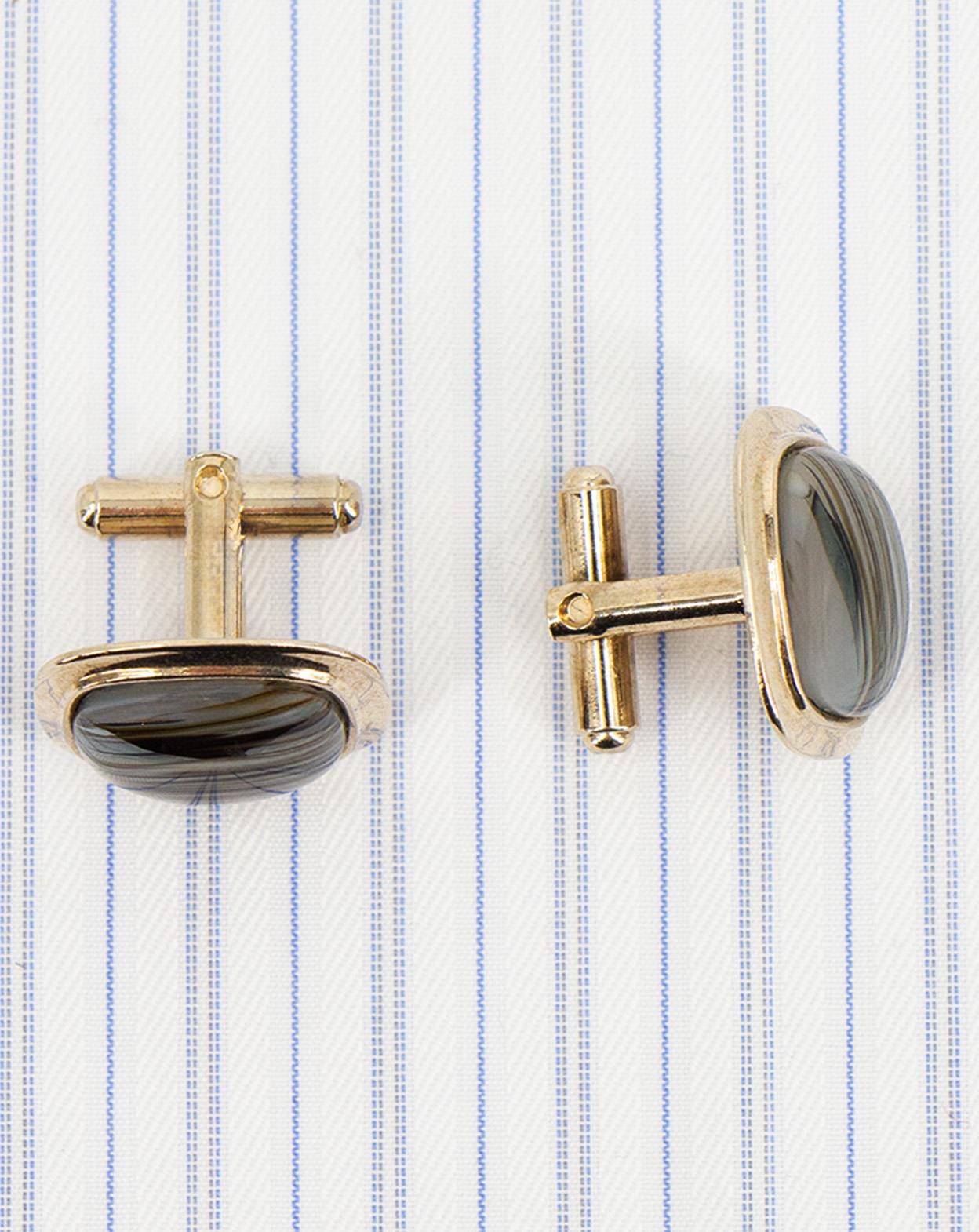• Silver plated cufflinks with marbled glass cabochons.