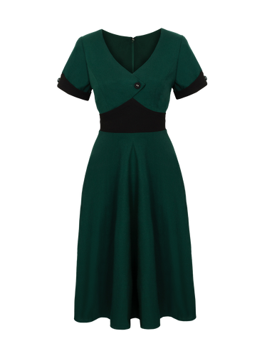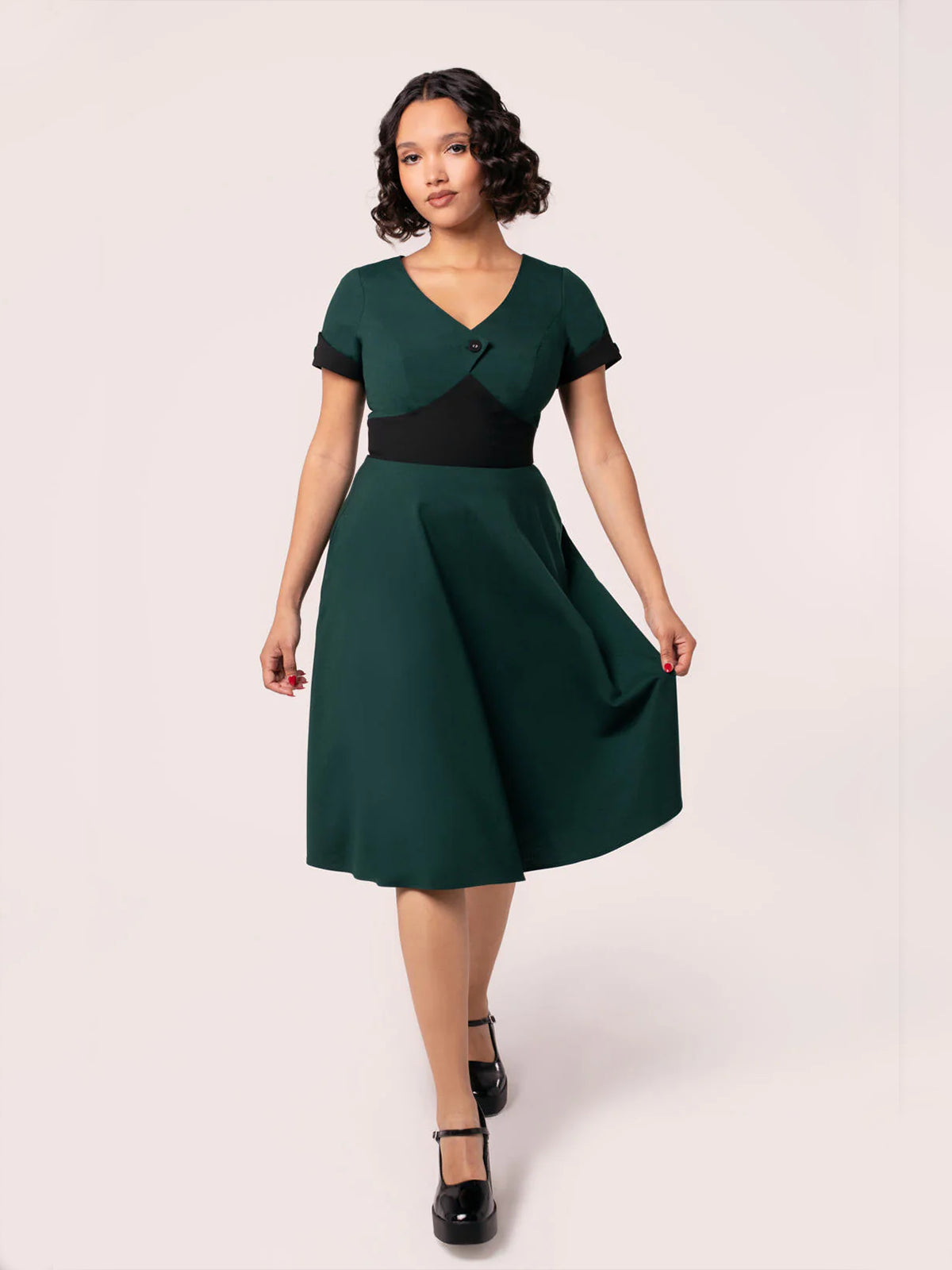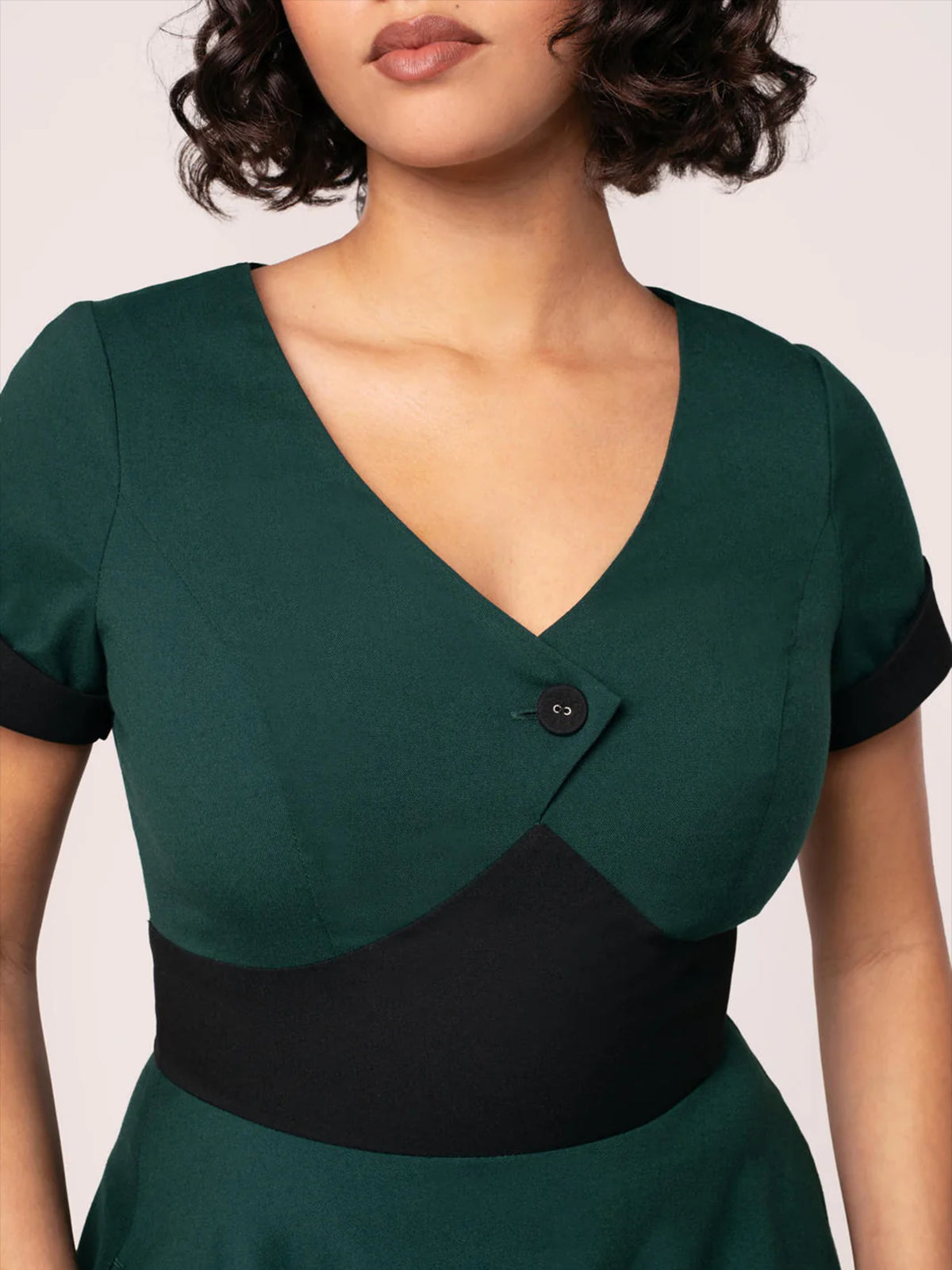 1950s Style Dress With Contrast Bodice - Emerald Green