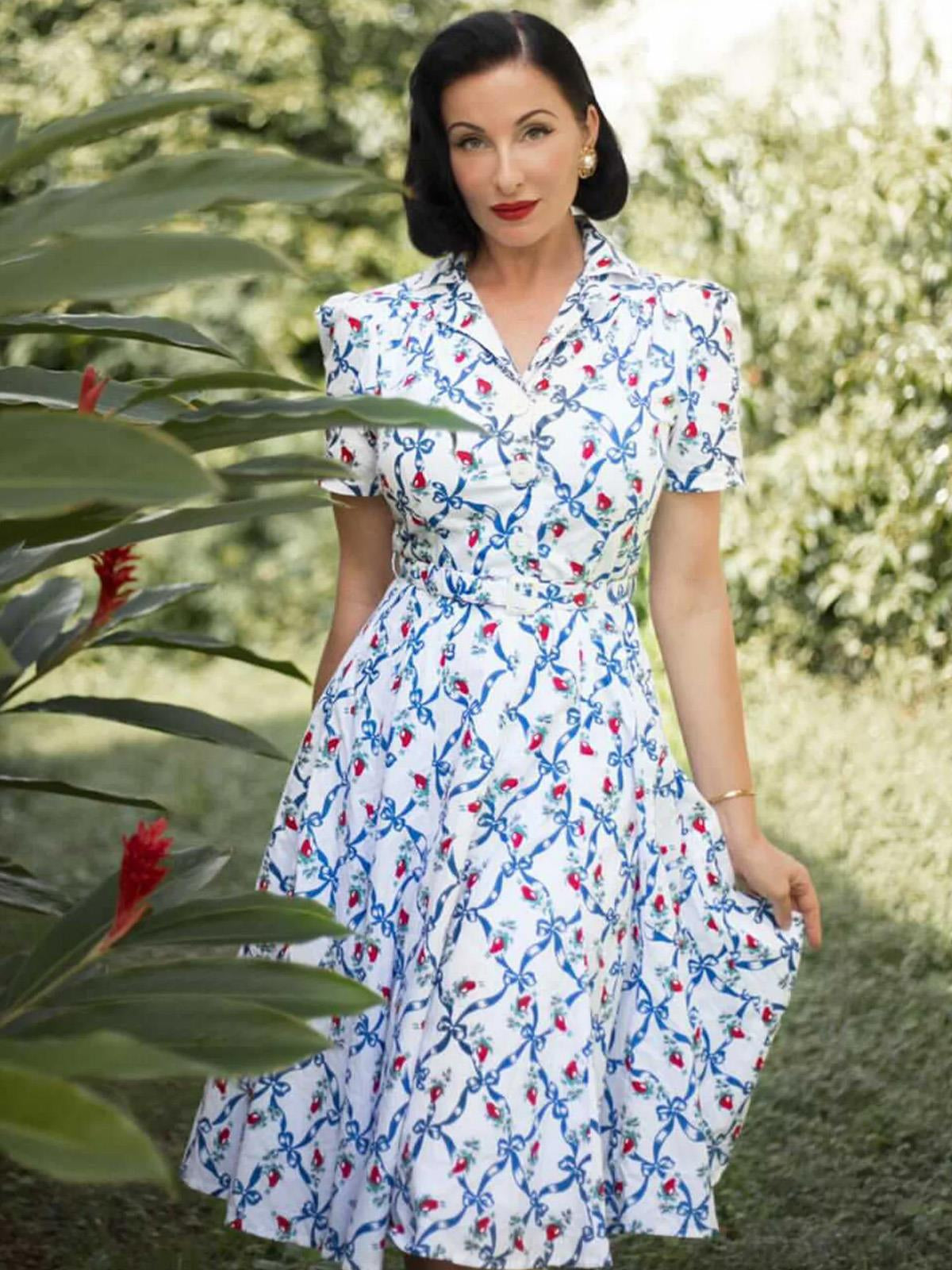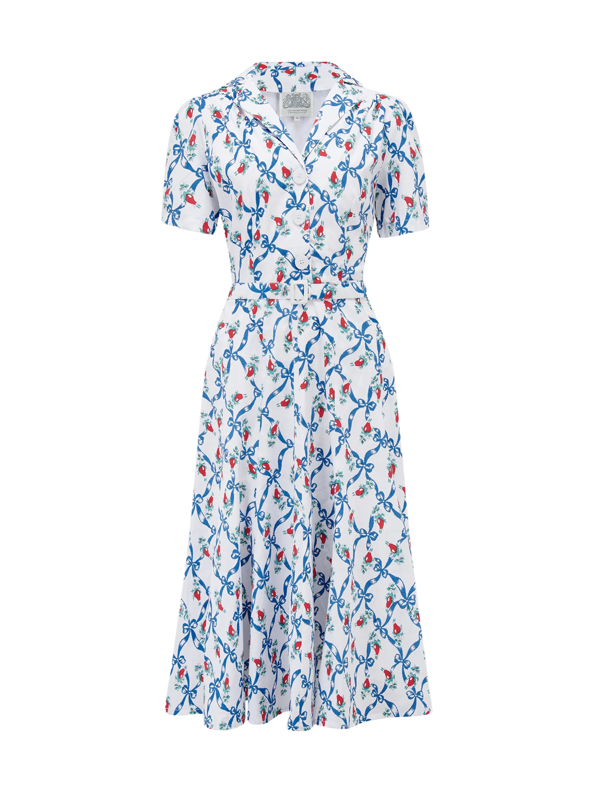 40s Inspired Bloomsbury Buds & Bows Cotton Dress