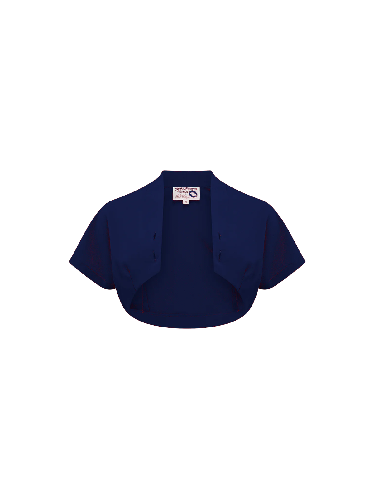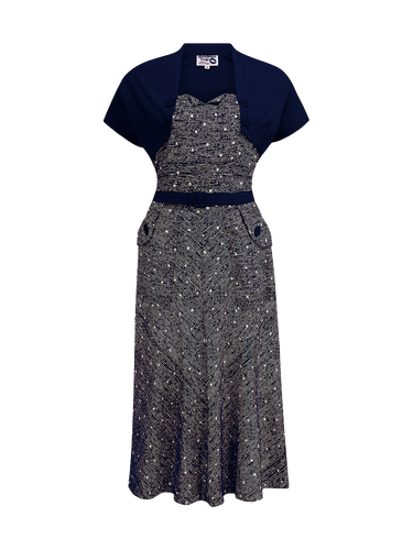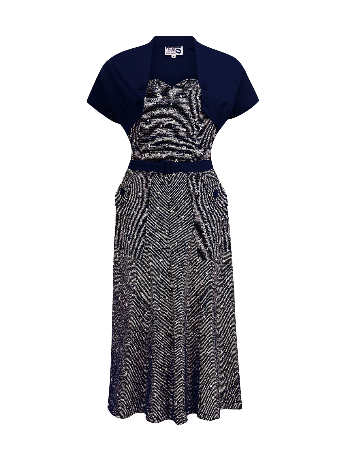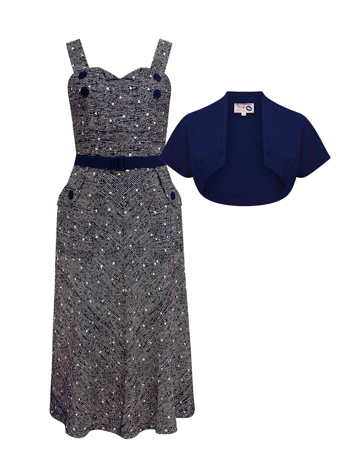 Vintage Style Ditzy Polkadot Dress & Bolero - Navy