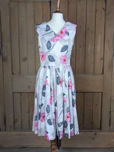 1950s Vintage Pink & Grey Flower Print Dress