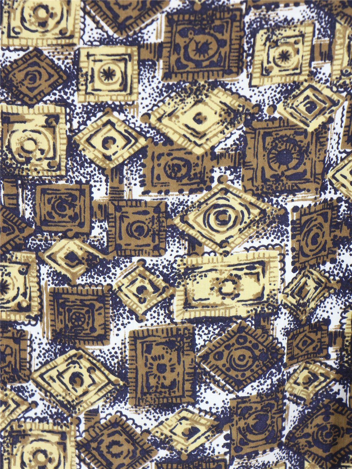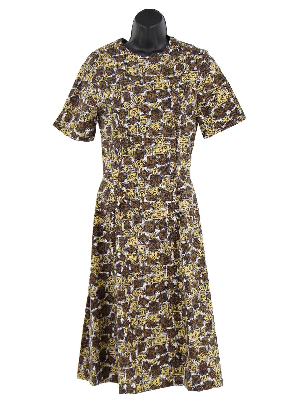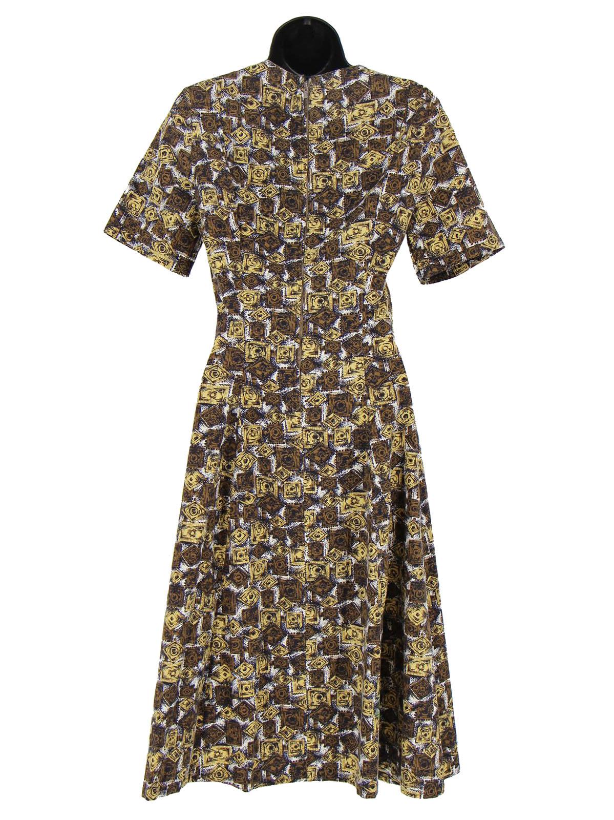 A great abstract retro pattern decorates this well-sewn vintage fifties day dress. Lightweight cotton fabric.