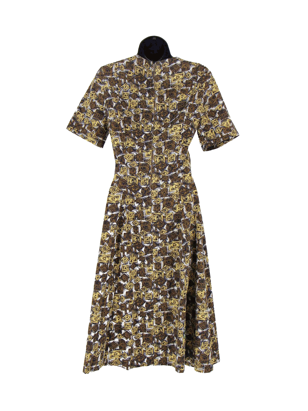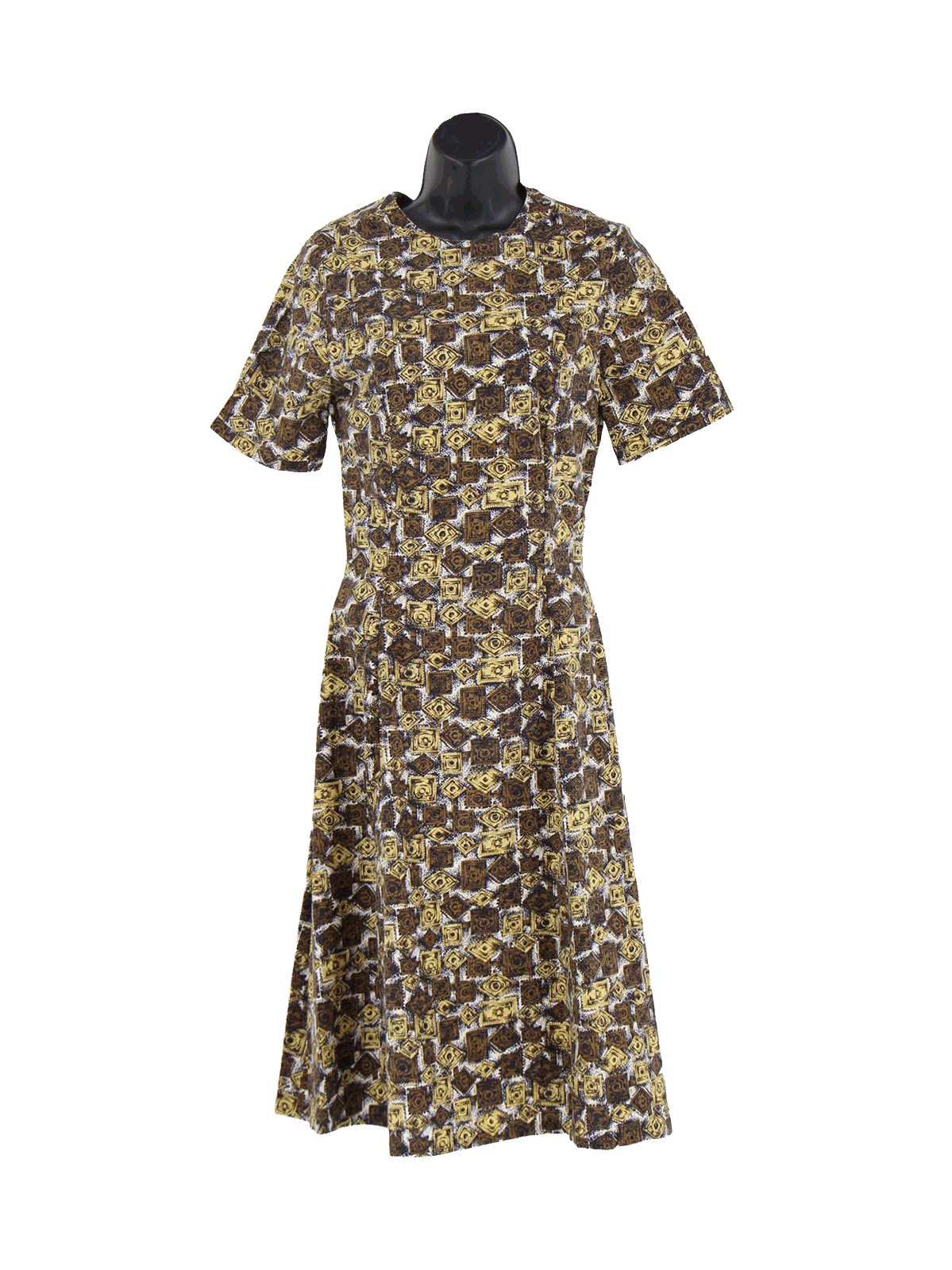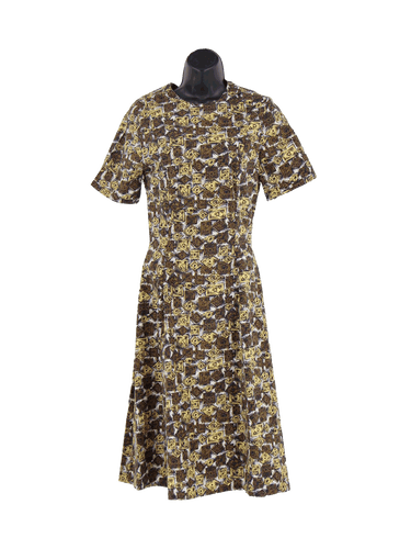 Brown Abstract Pattern 1950s Cotton Dress