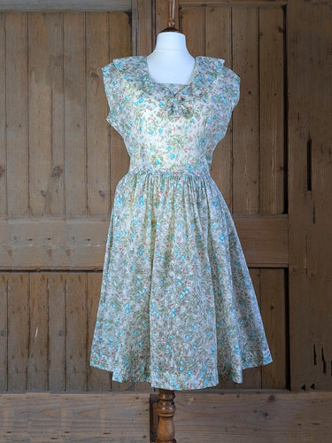 Crimped Nylon Rose Print Fifties Dress