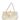 A sophisticated 1950s cream vintage clutch or evening bag with a gold frame and push clasp. It also has an optional gold chain for carrying. The front features pastel embroidery beneath a clear beaded panel, with the rest of the bag covered in cream beads. Inside is a cream lining with some small marks.
