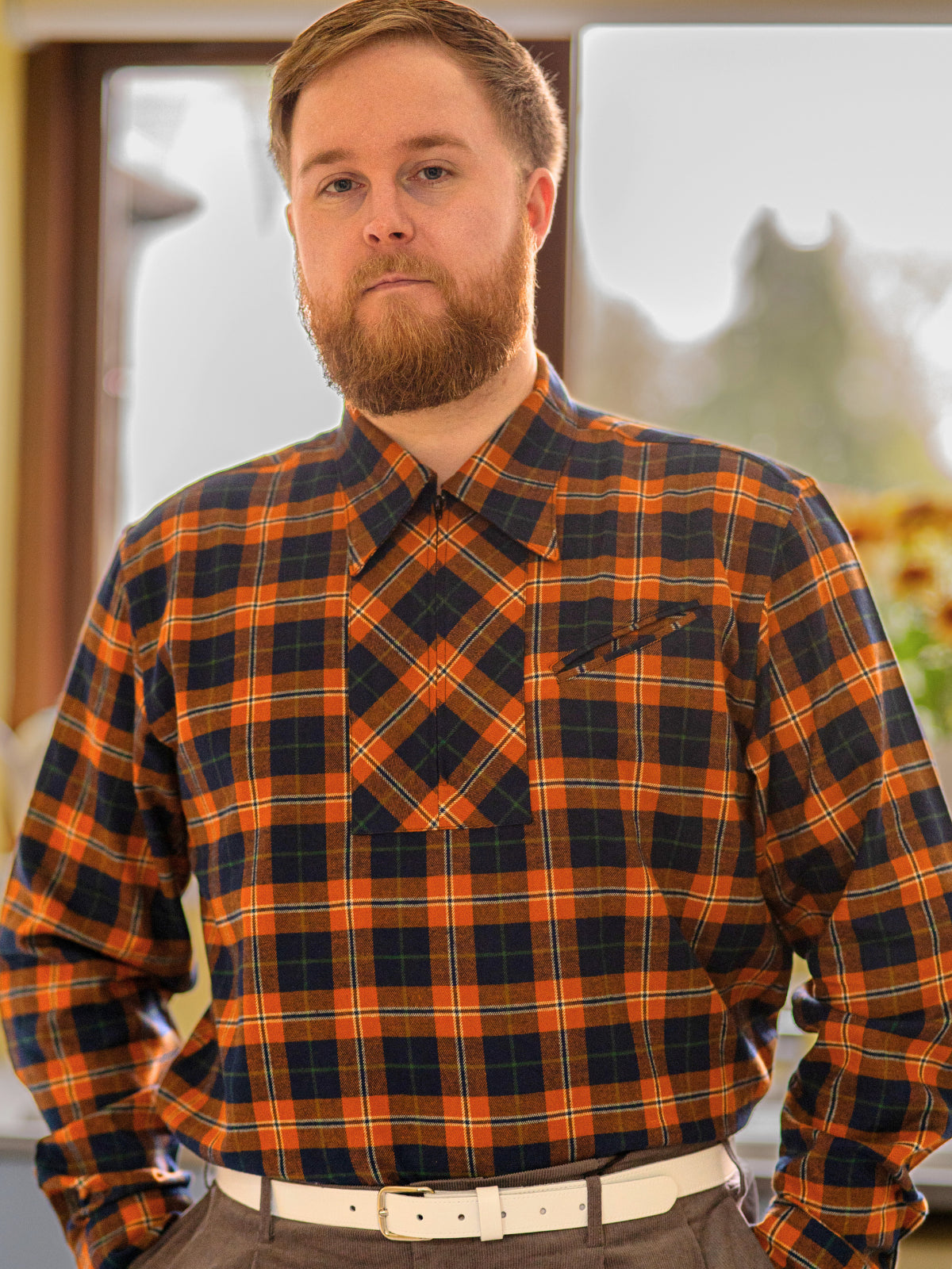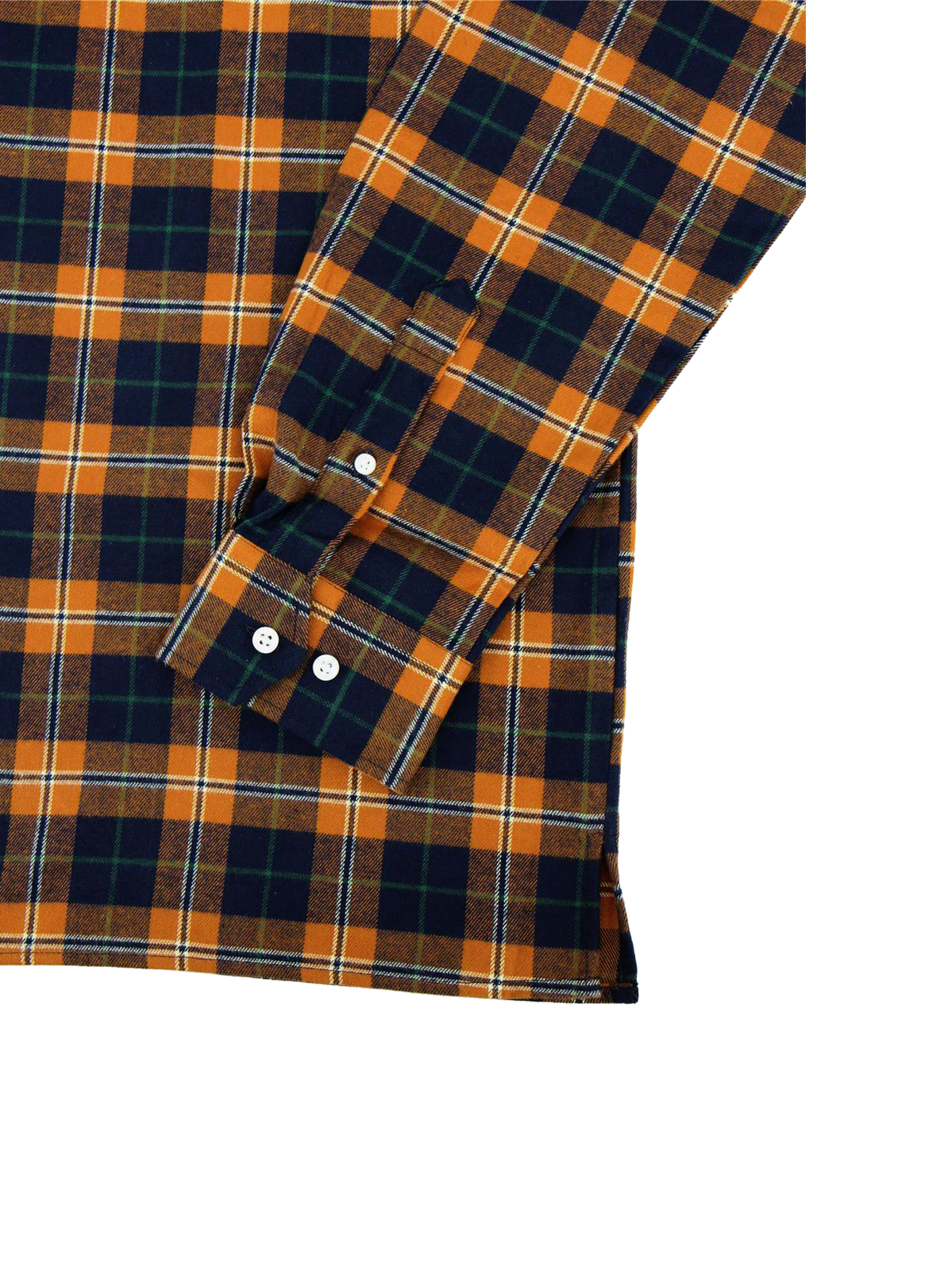 This colourway is a rusty orange tartan with navy blue and green accents, made from soft brushed flannel cotton for warmth and comfort without bulk. The design features our newly refined soft spearpoint collar and a carefully considered length, smart enough to tuck in, but just right to wear untucked.