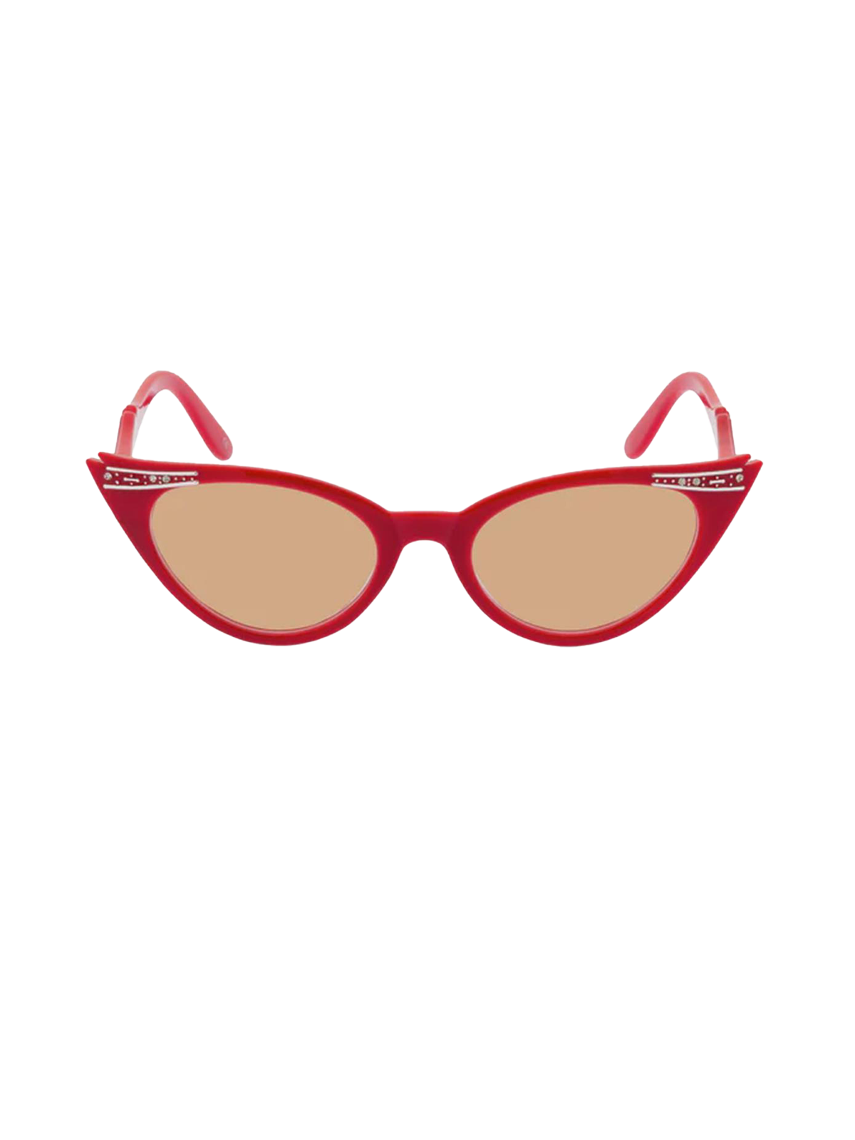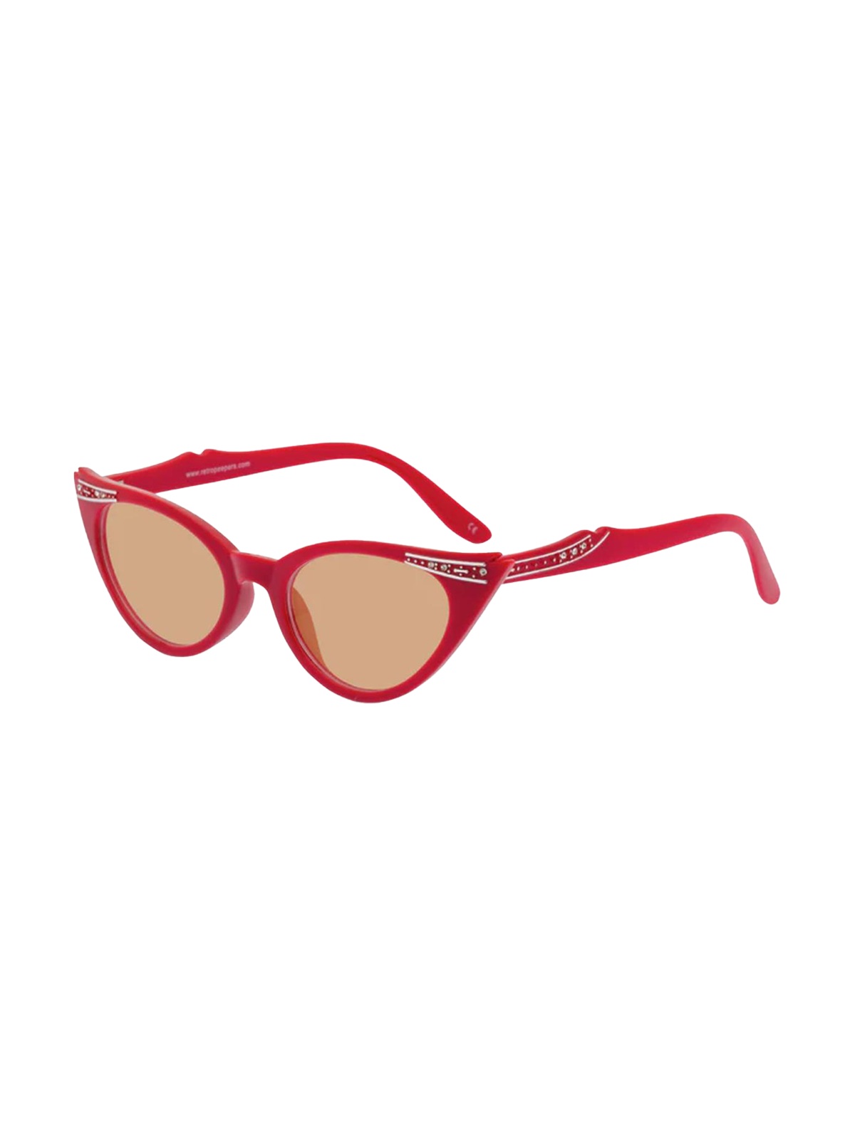 Premium vintage-style sunglasses in a bold lipstick red finish. Designed in a classic 1950s winged cat-eye shape, they feature subtle diamante detailing on the brow wings and temples for just the right touch of retro glamour.
