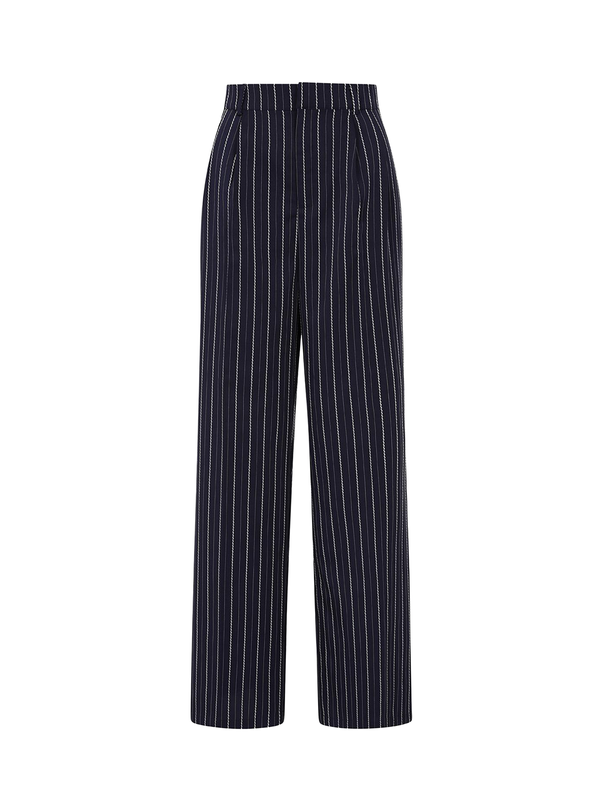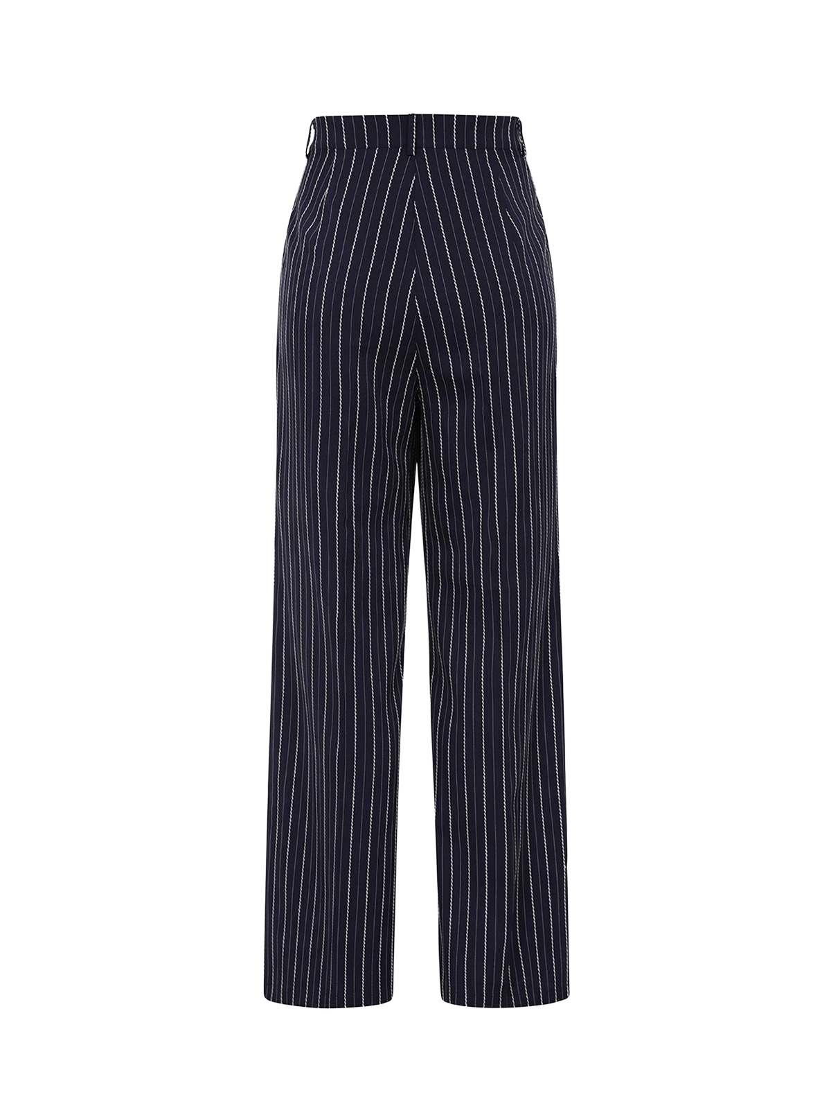 Navy Pinstripe Wide Leg 1940s Style Trousers